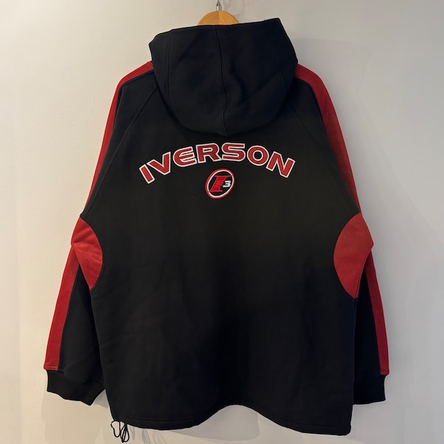 -     Reebok IVERSON/リーボック アイバーソン ジップフード スウェット 00年代 (USED) //2nd ITEM// ¥25,080 Reebok IVERSON/リーボック アイバーソン ジップフード スウェット 00年代 (USED) ・00年代アイテム ・ブラックスウェットxレッドメッシュ ・左胸にI3ロゴマーク刺繍 ・バックにIVERSONとI3刺繍 ・ハンドウォームポケット ・裾にドローコード ・裏起毛素材 Size/XXL 実寸 着丈 約75cm 身幅 約73cm 着用感が見られますが、目立ったヨゴレやダメージは見られません。 〜コメント〜 00年代のリーボック社製、アイバーソンのジップフードスウェットになります。 ブラックの裏起毛素材xレッドメッシュ、左胸にI3ロゴマーク刺繍、バックに大きくIVERSONとI3刺繍、ハンドウォームポケット、裾にドローコードが入るデザインです。 幅の広いルーズシルエット、ビッグサイズになります。 見かける事の少なくなったアイテムではないでしょうか? サイズ表記はXXL、メンズのXXL~XXXL程度のサイズ感とお考え下さい。 男女共に着用いただけます。 モデルは173cmです。 状態をご納得いただいた上での購入とさせて頂いております。状態を確認されたいお客様はご来店の上、お買い上げください。