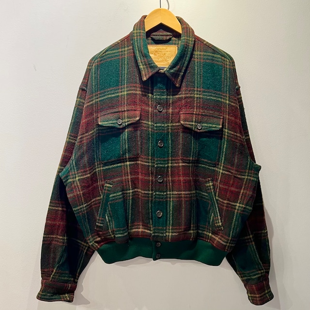 Polo Ralph Lauren SPORTSMAN/ポロラルフローレン スポーツマン ウールチェック ジャケット 90年代 (USED) ・90年代アイテム ・グリーン/バーガンディ系大柄チェック ・両胸にフラップ付きポケット ・ハンドウォームポケット ・裾、袖にリブ ・トップボタンにチンストラップ ・裏地ナシ Size/XL 実寸 着丈 約64cm 肩幅 約58cm 身幅 約69cm 袖丈 約64cm ウール100% 着用感が見られますが、目立ったヨゴレやダメージは見られません。 Made in SINGAPORE ~コメント~ 90年代 のポロラルフローレン、スポーツマンのチェックウールジャケットになります。 グリーン/バーガンディ系の大柄チェック、両胸にフラップ付きポケット、ハンドウォームポケット、トップボタンにチンストラップの付いたデザインです。 見かける事の少なくなったアイテムではないでしょうか? 幅の広いルーズシルエット、ビッグサイズになります。 サイズ表記はXL、メンズのL~XL程度のサイズ感とお考え下さい。 男女共に着用いただけます。 モデルは164cmです。 状態をご納得頂いた上でのお買い上げとさせていただいております。状態を確認されたいお客様はご来店の上、購入下さい。