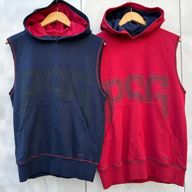 -     NIKE PSG/ナイキ パリサンジェルマンノースリーブフードスウェット 2003年 (DEADSTOCK) ¥14,080 NIKE PSG/ナイキ パリサンジェルマンノースリーブフードスウェット 2003年 (DEADSTOCK) ・00年代アイテム ・ネイビーxレッド、レッドxネイビーの裏毛素材 ・フロントに大きくPSGプリント ・バック右裾にPSGロゴマークワッペン ・カンガルーポケットの右裾にスウォッシュ刺繍 ・札付き Size/M、L 実寸 ネイビー M 着丈 約63cm 肩幅 約45cm 身幅 約52cm レッド L 着丈 約70cm 肩幅 約47cm 身幅 約53cm コットン80% ポリエステル20% 未使用のデッドストック品になります。目立ったヨゴレやダメージは見られません。 Made in INDONESIA ~コメント~ 2003年製のナイキ、パリサンジェルマンのノースリーブフードスウェットになります。 ネイビーxレッド、レッドxネイビーの裏毛素材、フロントに大きくPSGプリント、カンガルーポケットの左裾にスウォッシュ刺繍、バック左裾にPSGロゴマークワッペンが付いたデザインです。 札付きのデッドストック品、幅の広めなシルエットになります。 サイズはネイビーベースがM、レッドベースがLを用意しました。 それぞれメンズのS~M、M~L程度のサイズ感とお考えください。 男女共に着用いただけます。 モデルはネイビー着用が153cm、レッド着用が162cmです。 状態をご納得頂いた上での購入とさせていただいております。状態を確認されたいお客様はご来店の上、お買い上げください。