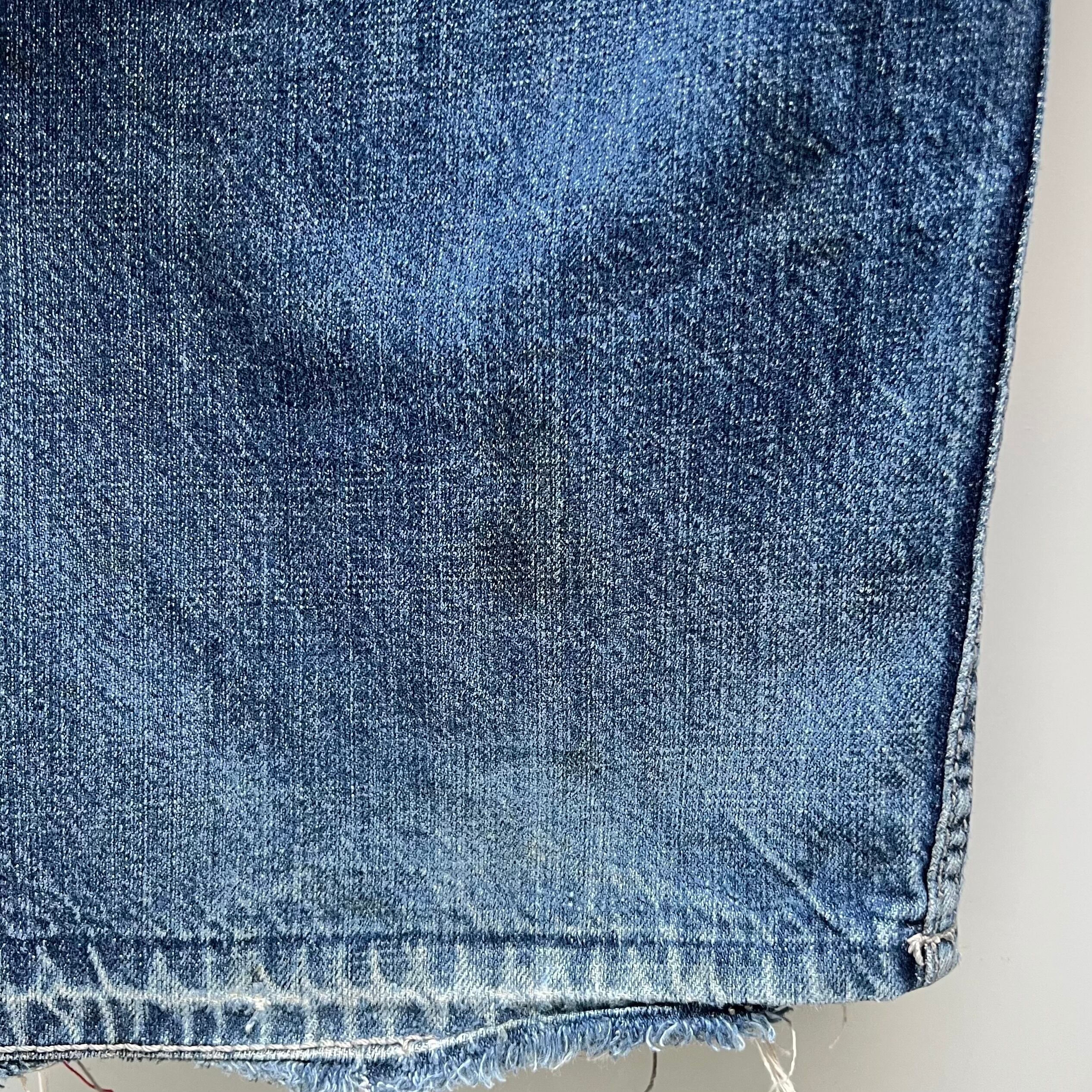 裾上げされています。また、薄ヨゴレ、ほつれが見られる箇所があります。その他、着用感が見られますが、目立ったダメージやヨゴレは見られません。