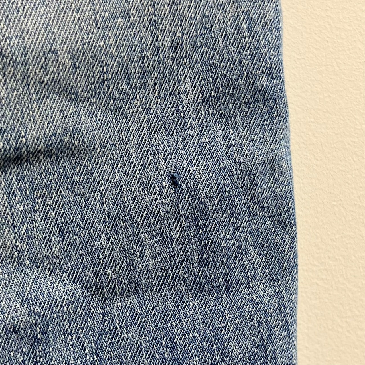 裾上げされています。またバック中央のベルトループがホツレています。その他、着用感が見られますが、目立ったダメージやヨゴレは見られません。