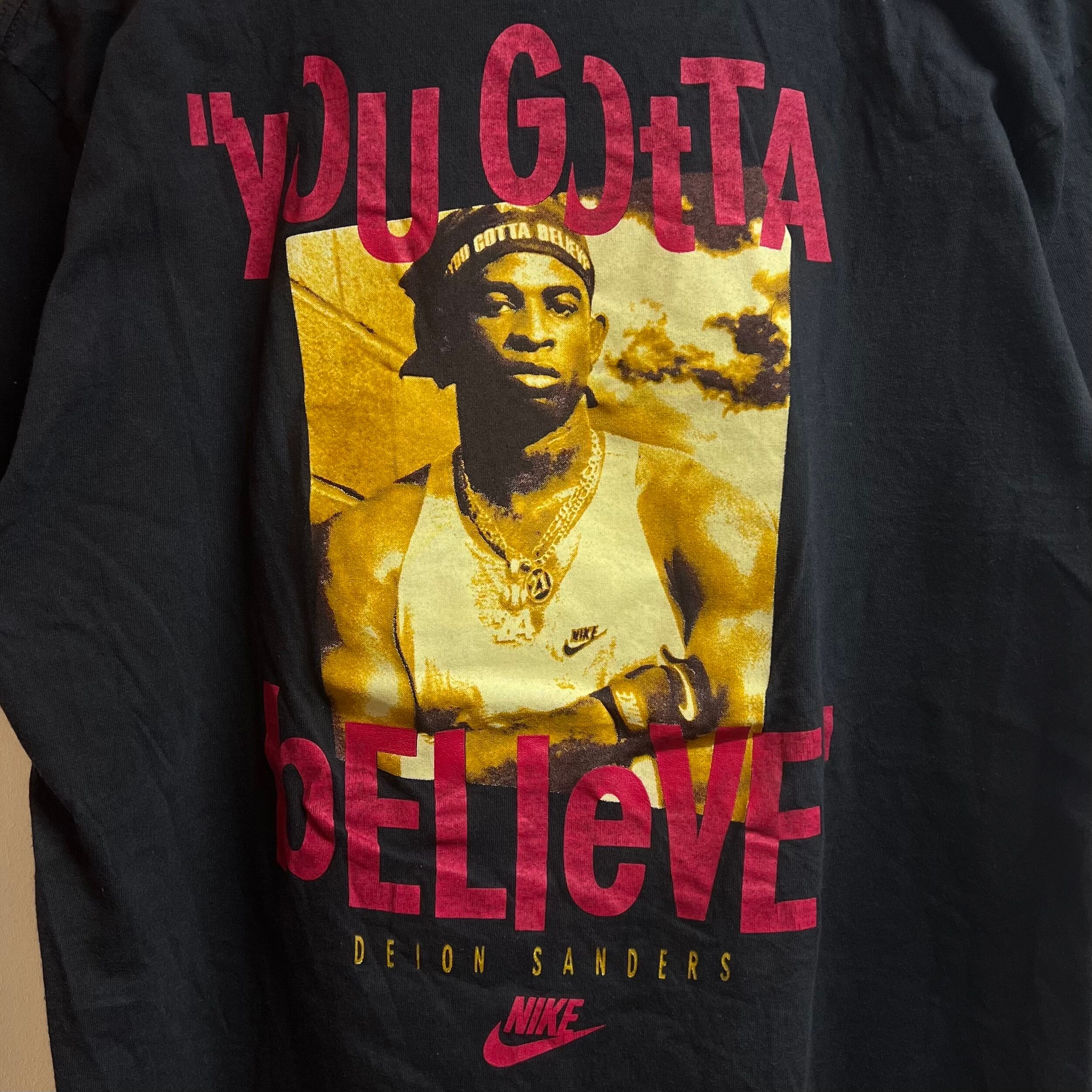 ・バックにディオンサンダースのフォトとナイキロゴ、YOU GOTTA BELIVEプリント