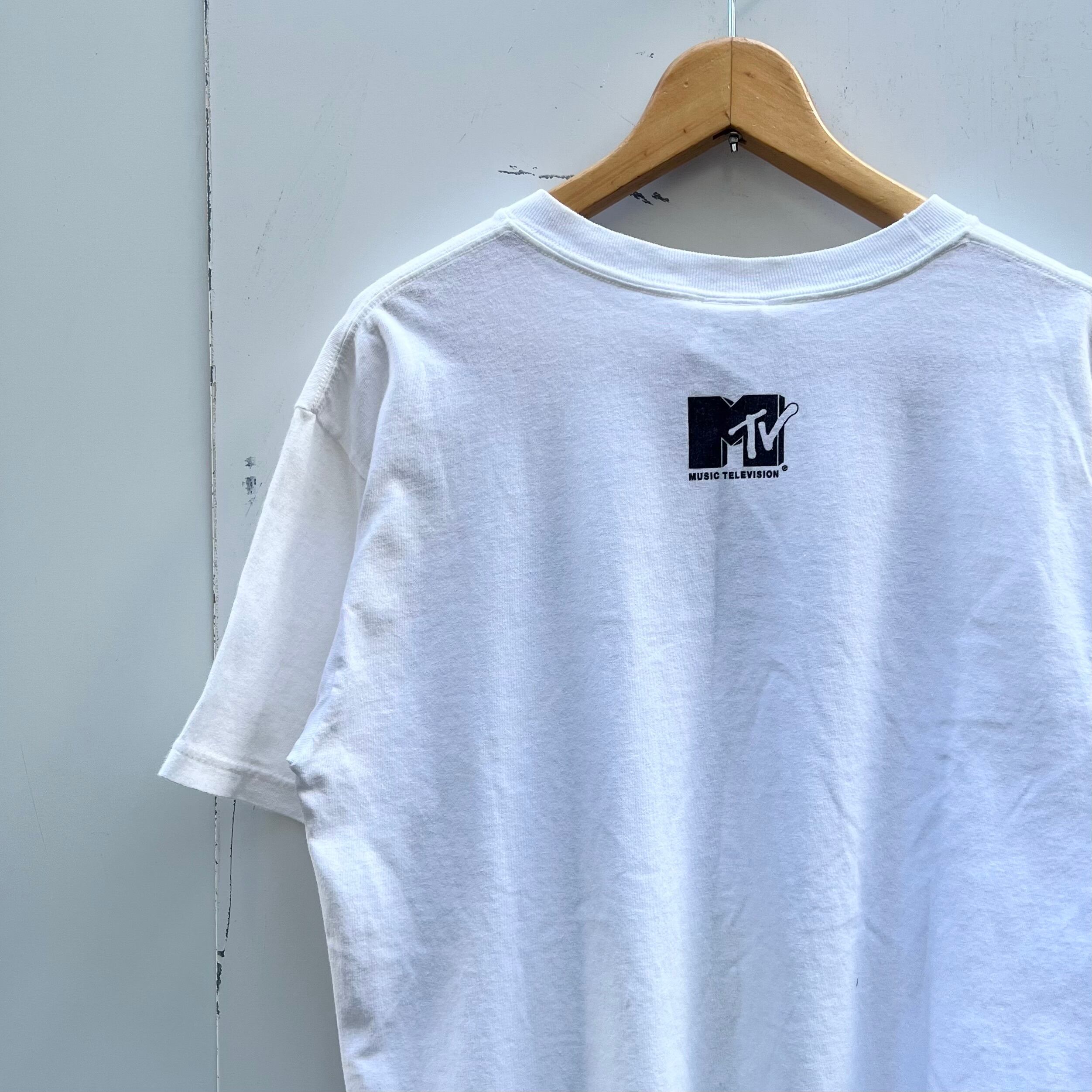 ホワイトのコットン素材、フロントにMTV JACKASS THE MOVIEのプリント、バック襟元にMTVロゴマークプリントが入るシンプルデザインです。