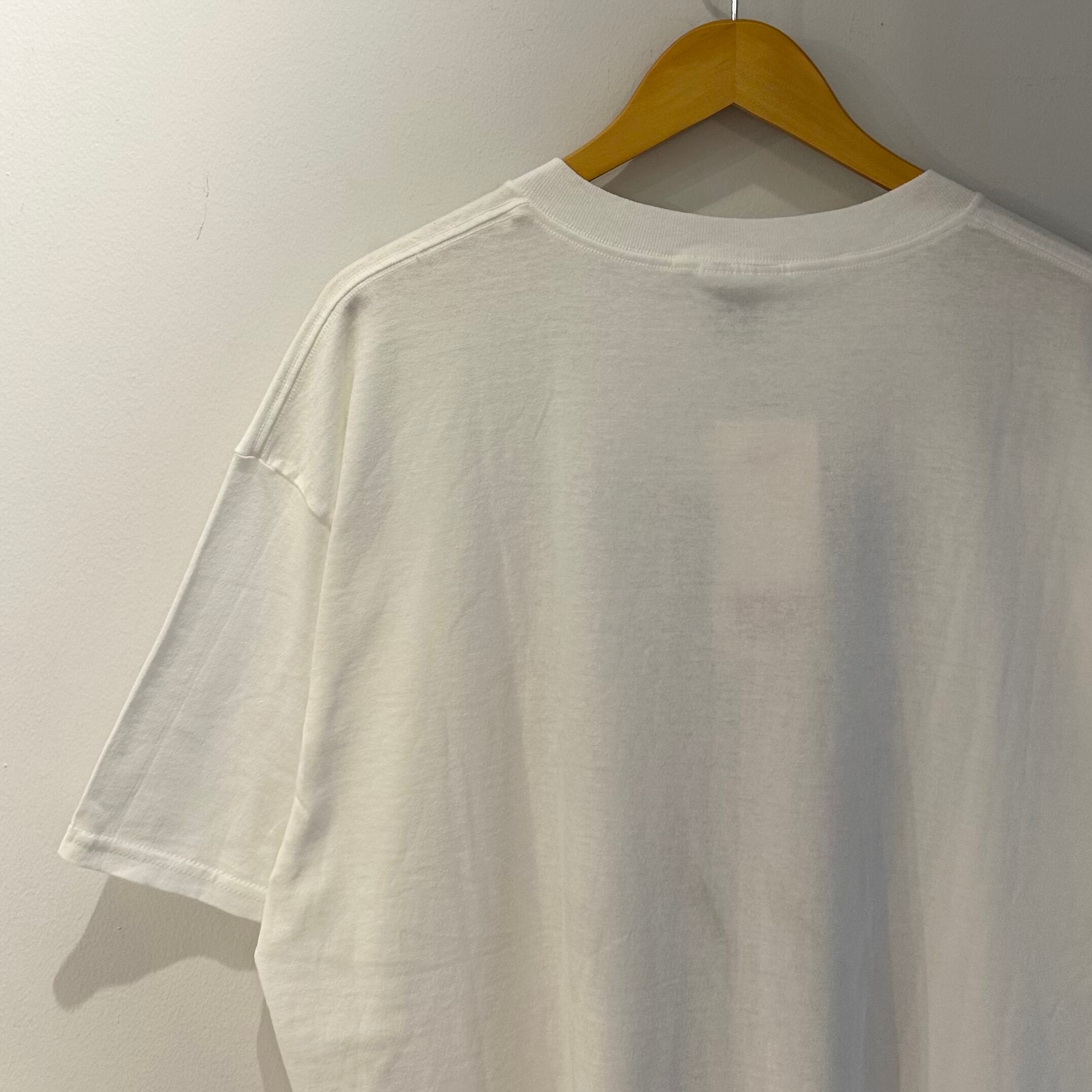 ホワイトのコットン素材、フロントにDOUBLE ACTIONとプリントペニーのフォトグラフィックプリントが入るデザインです。