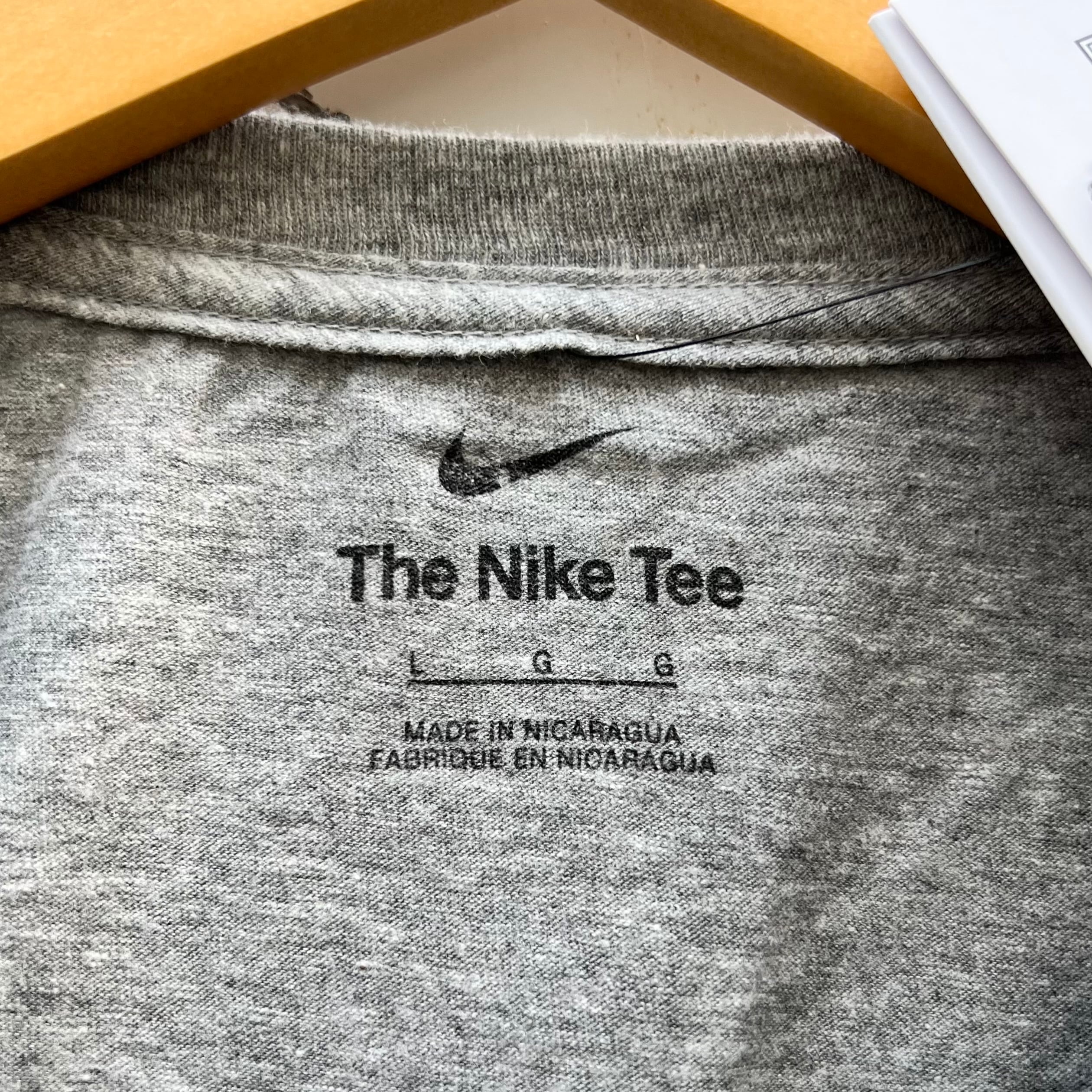 グレーのポリエステル混素材、左胸にNYロゴ、右胸にNIKEロゴプリントが入るデザインです。
