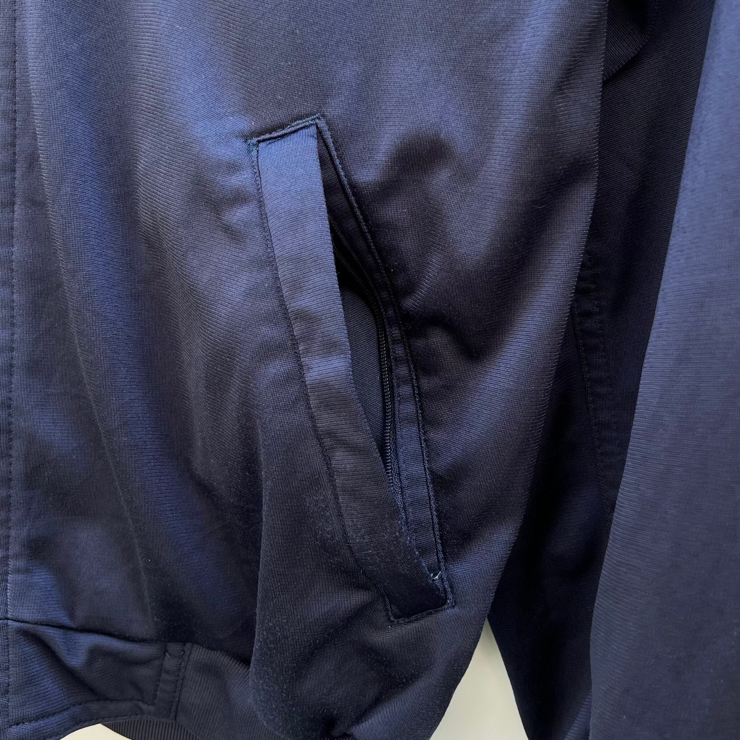 ネイビーのジャージ素材、左胸にスウォッシュ刺繍、バックに大きくスウォッシュが刺繍されたデザインです。