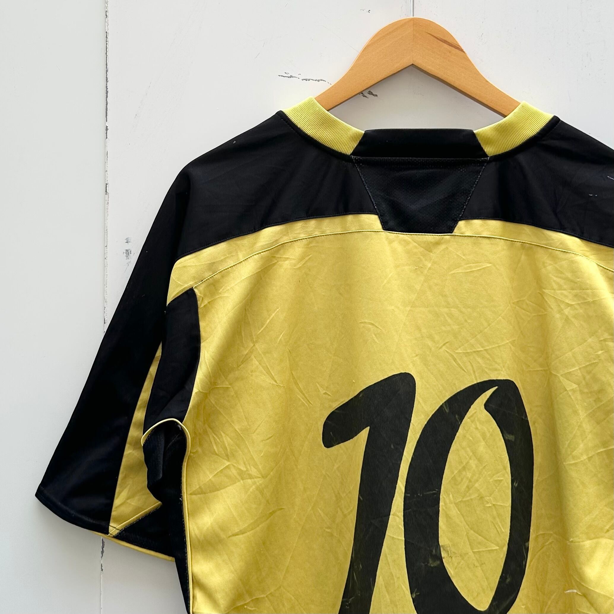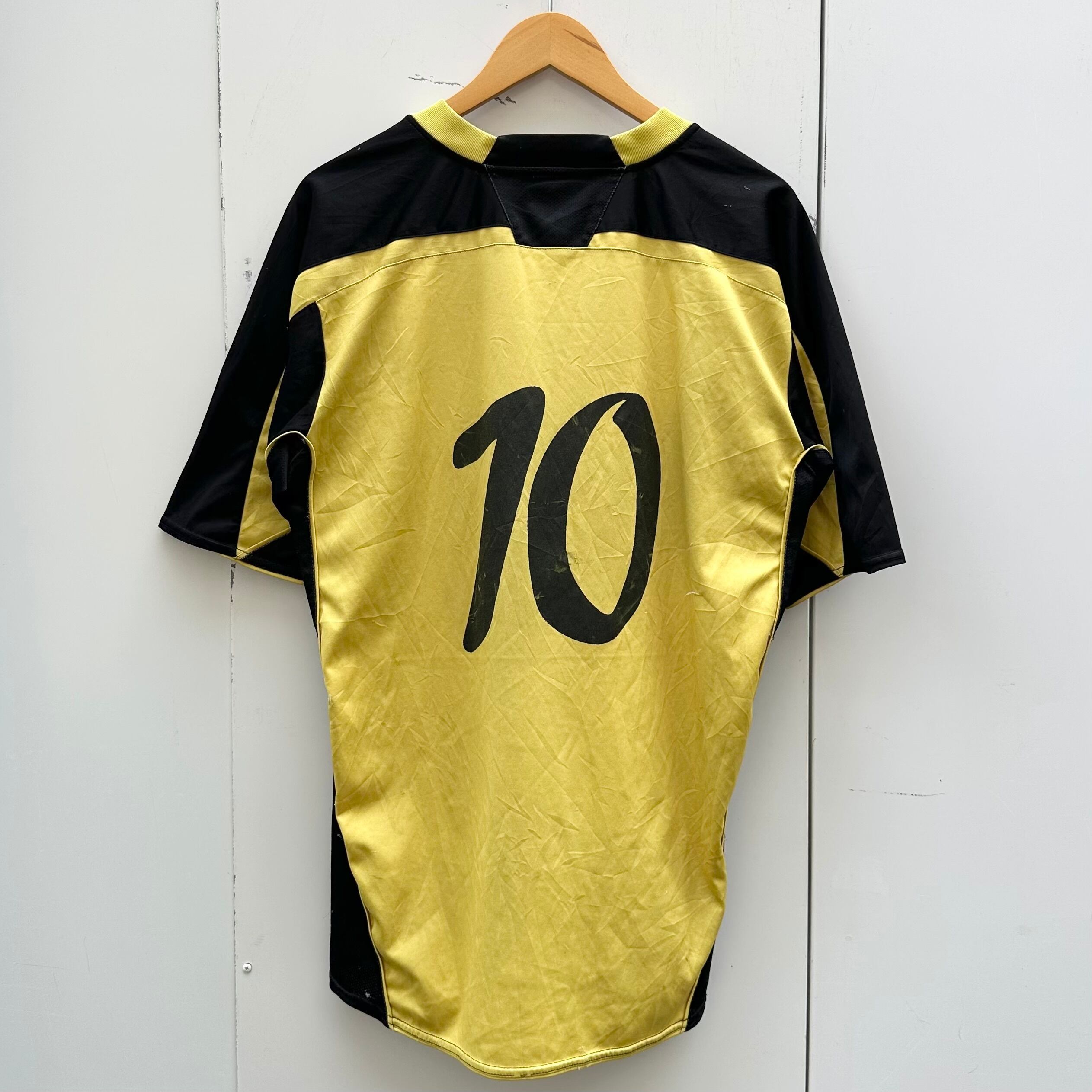 イエローxブラック/ブラックメッシュ切り替え、左胸にチームロゴマークプリント、右胸にMACRON刺繍、中央にスポンサープリント、バックに10プリントが入るデザインです。