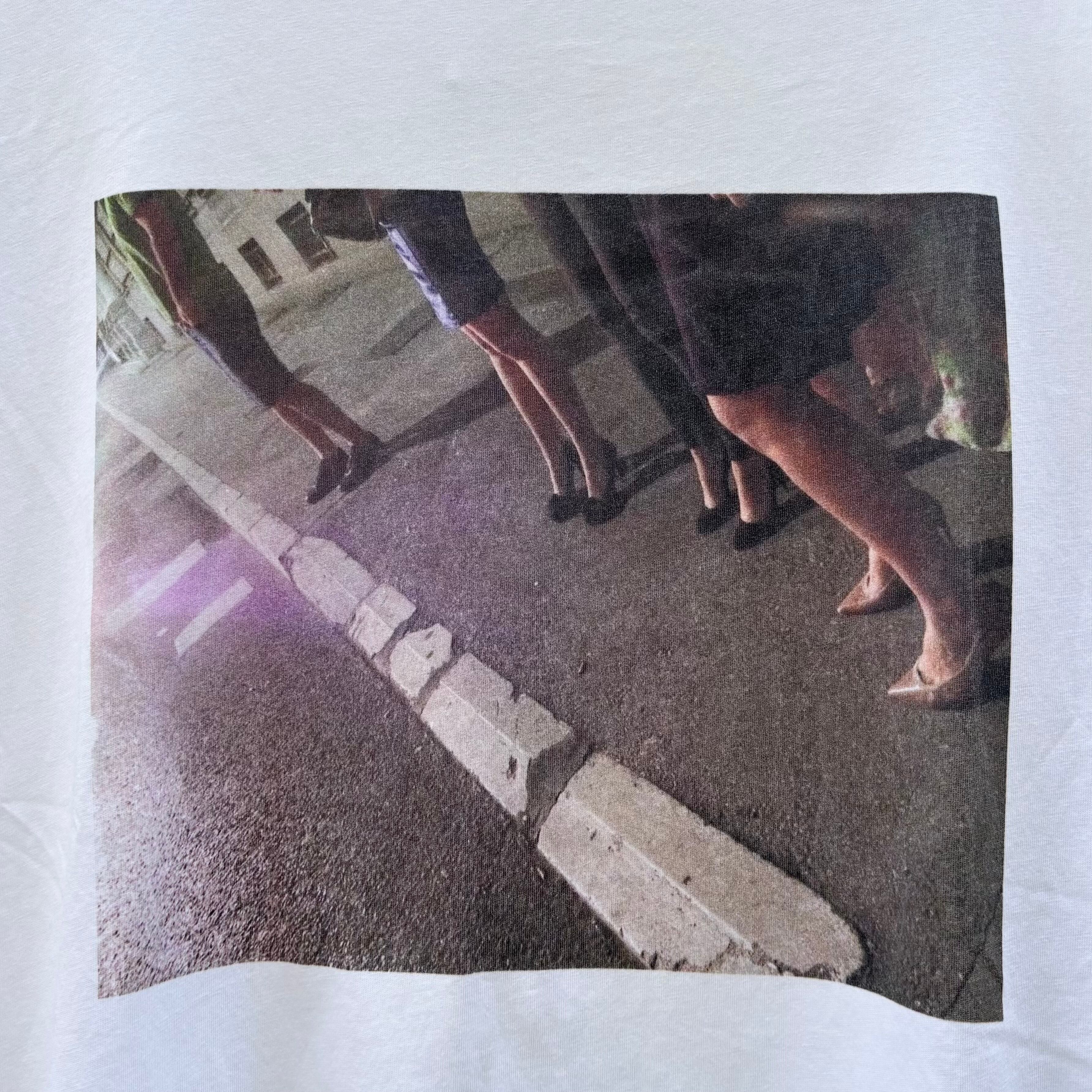 ホワイトのコットン素材、フロントにフォトグラフィックプリント、左サイドにphotographie@agnis b.のピスネームが付いたデザインです。