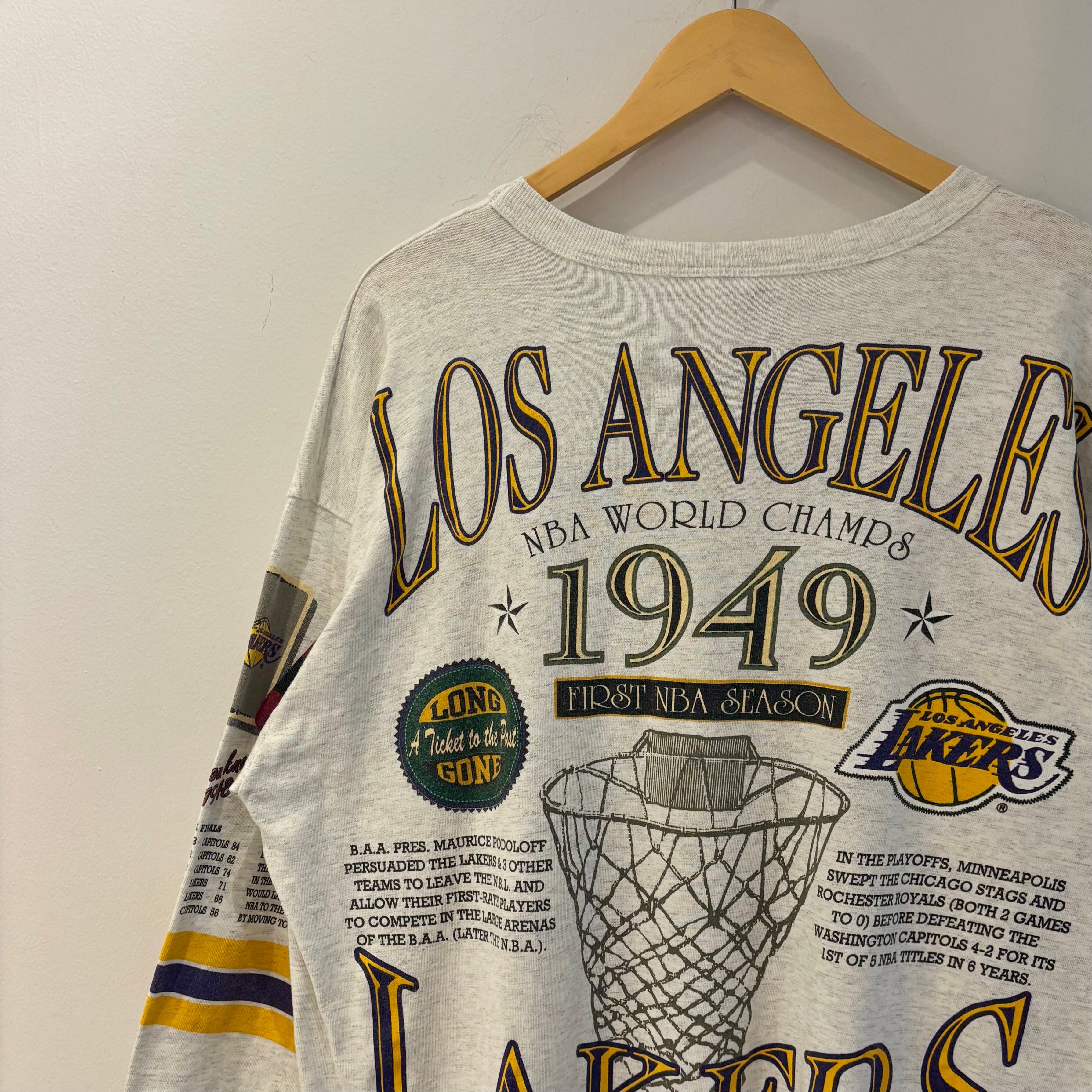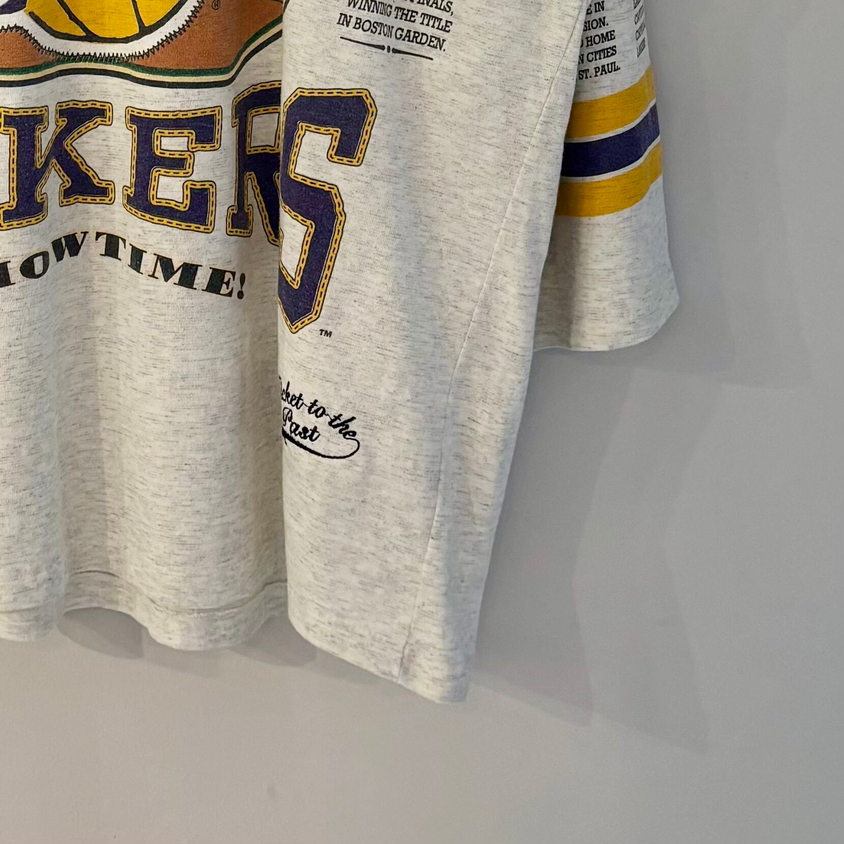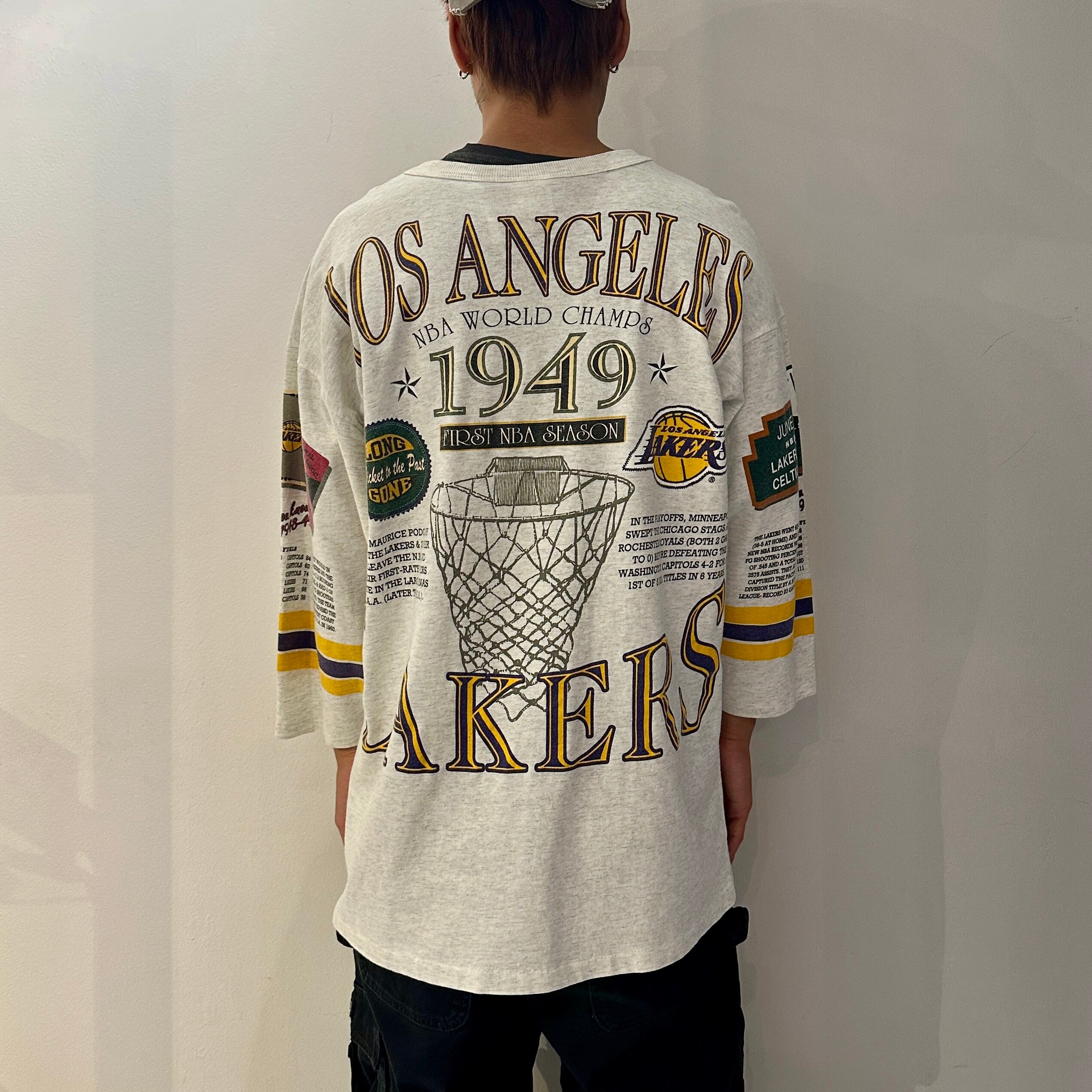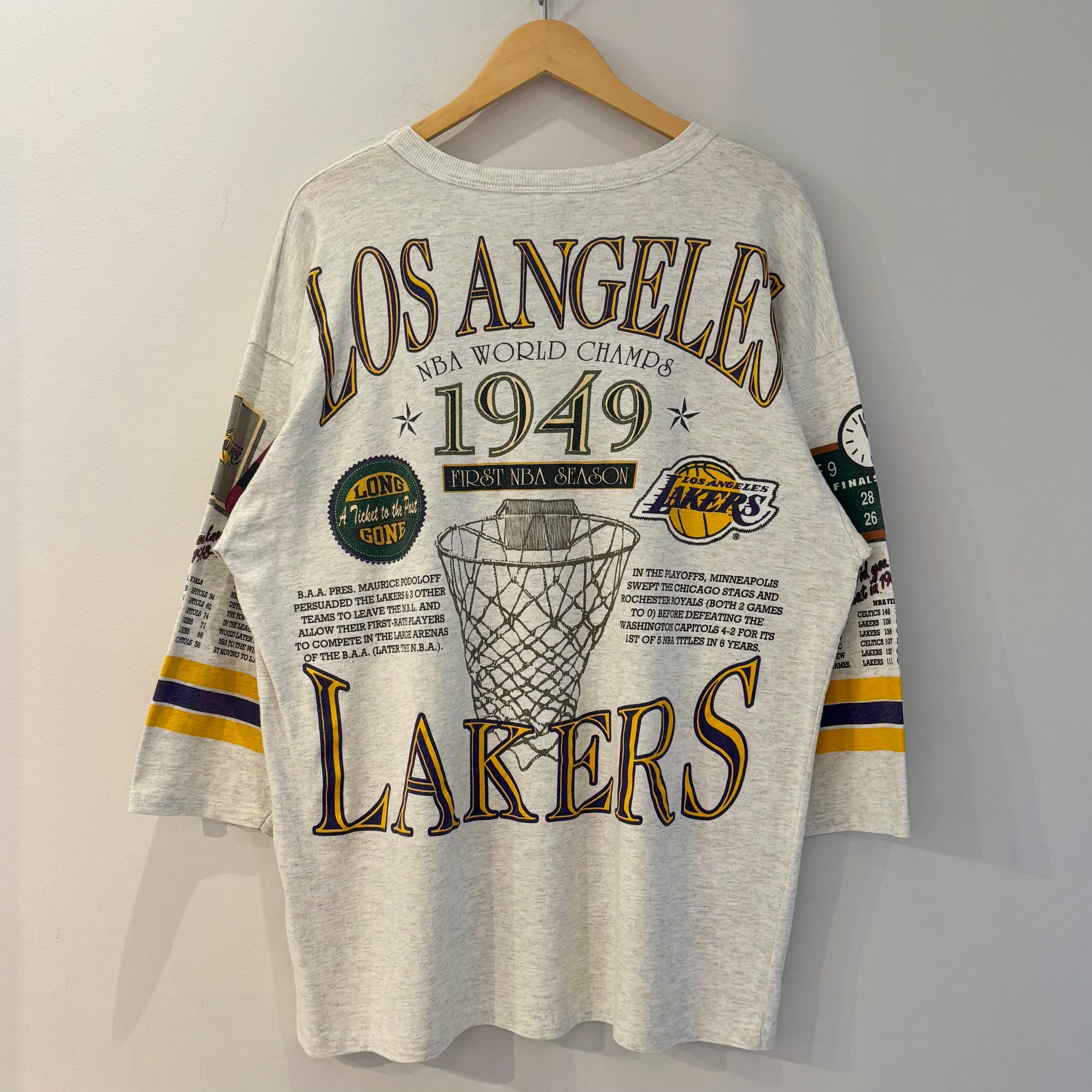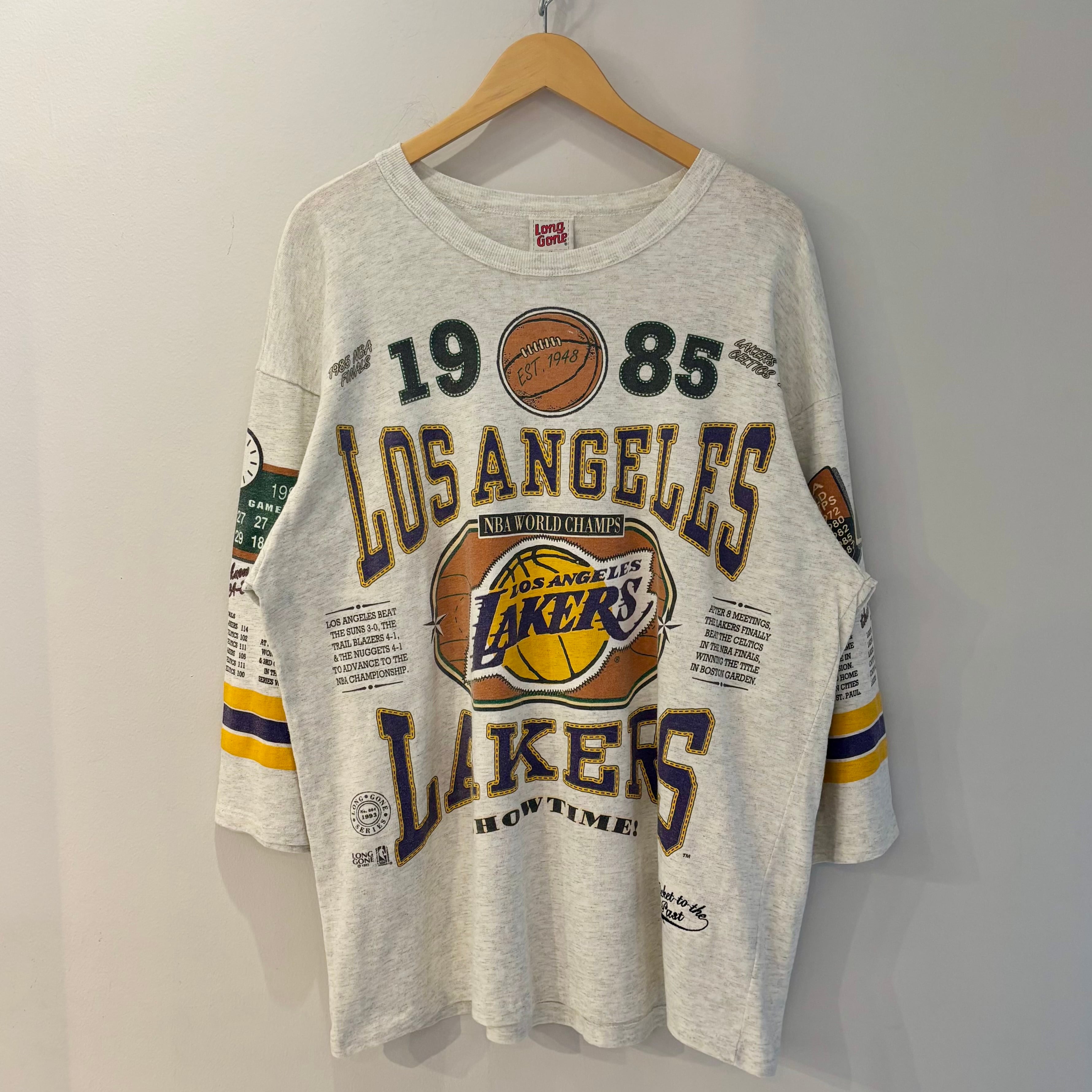 93年のロングゴーン社製、NBAロサンゼルスレイカーズの7分Tシャツになります。