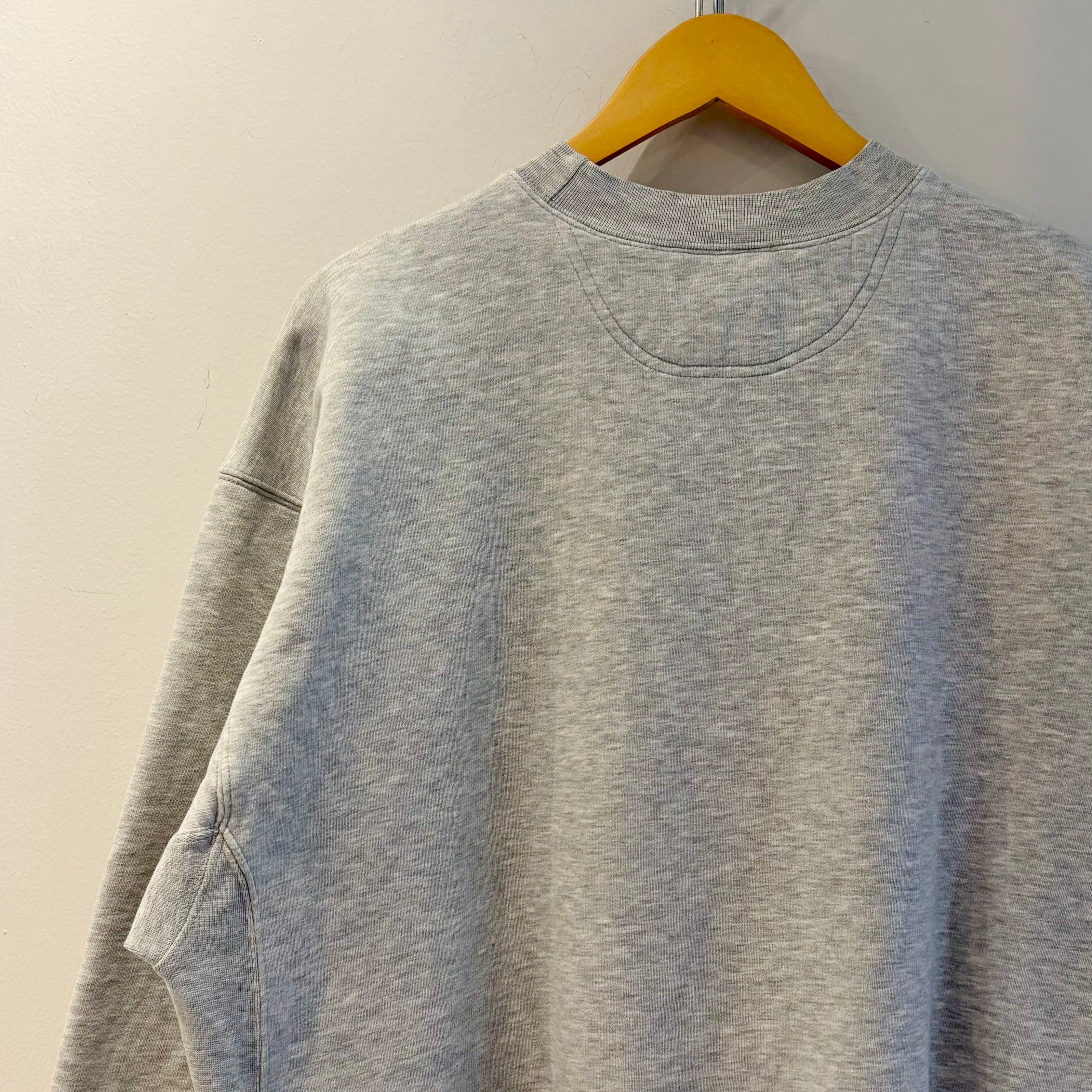 アッシュグレーの裏起毛素材、フロントにPENN STATE刺繍とジュエルスウォッシュ付きワッペンが付いたシンプルデザインです。