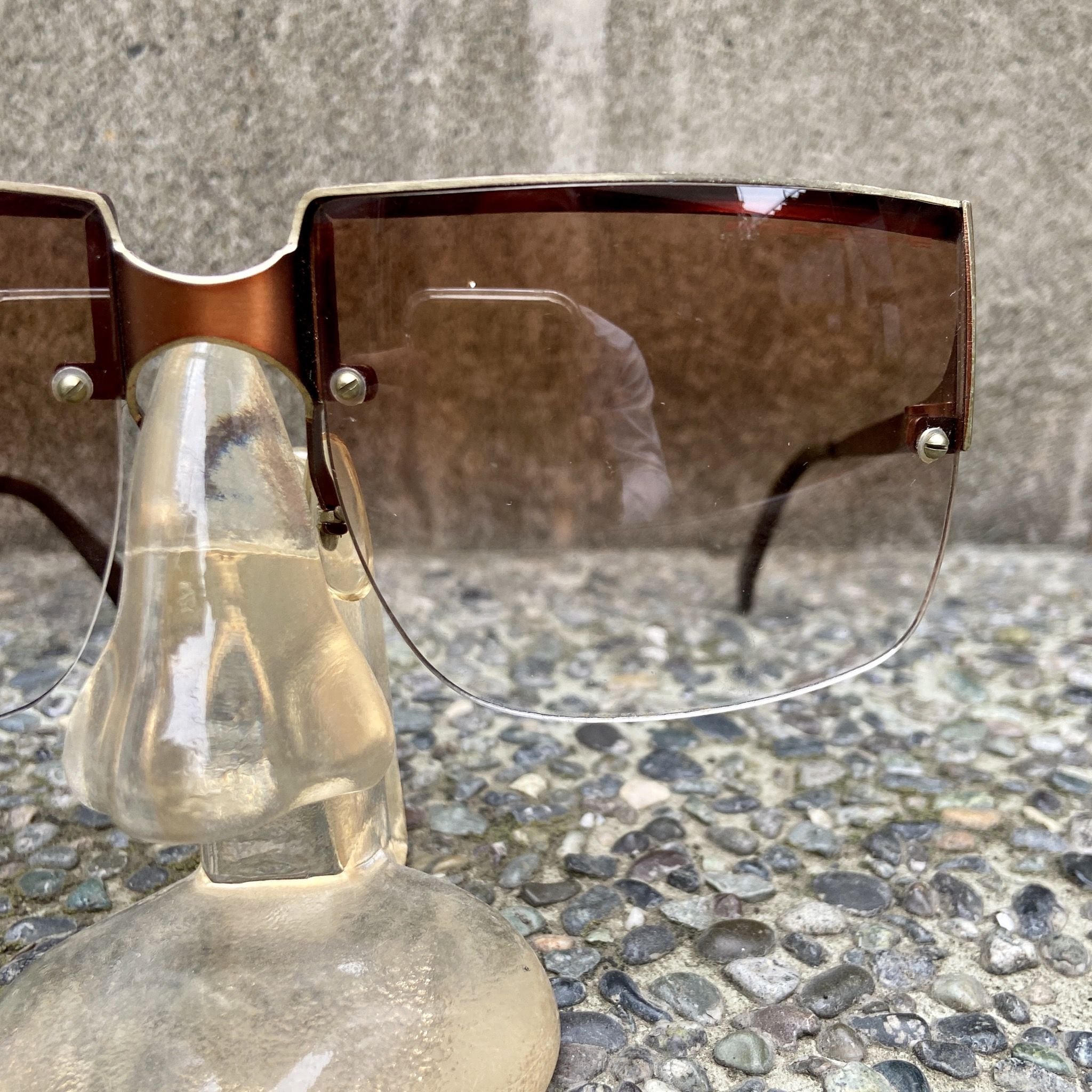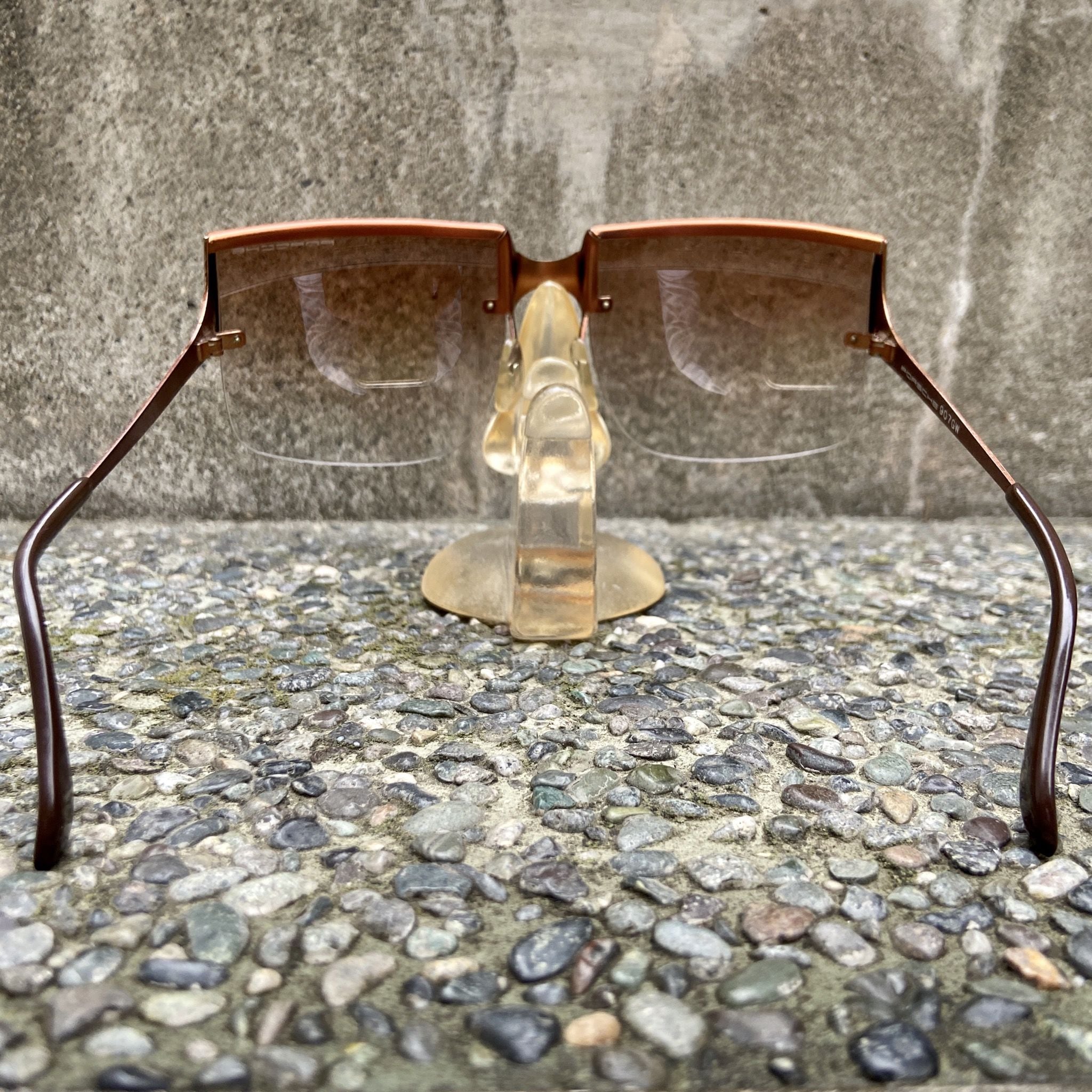 ブロンズカラーのメタルフレーム、専用に作られたグラデーションレンズが入るかなり個性的なデザインです。