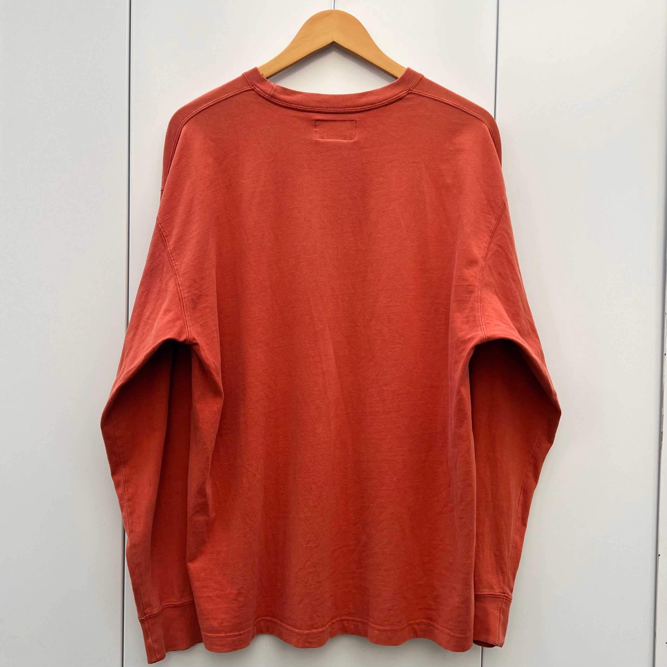 オレンジのコットン素材、フロントにロゴがプリントされたシンプルデザインです。