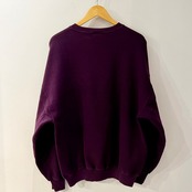 パープルの裏起毛素材、フロントに大きくロゴとロゴマーク刺繍が入るシンプルデザインです。
