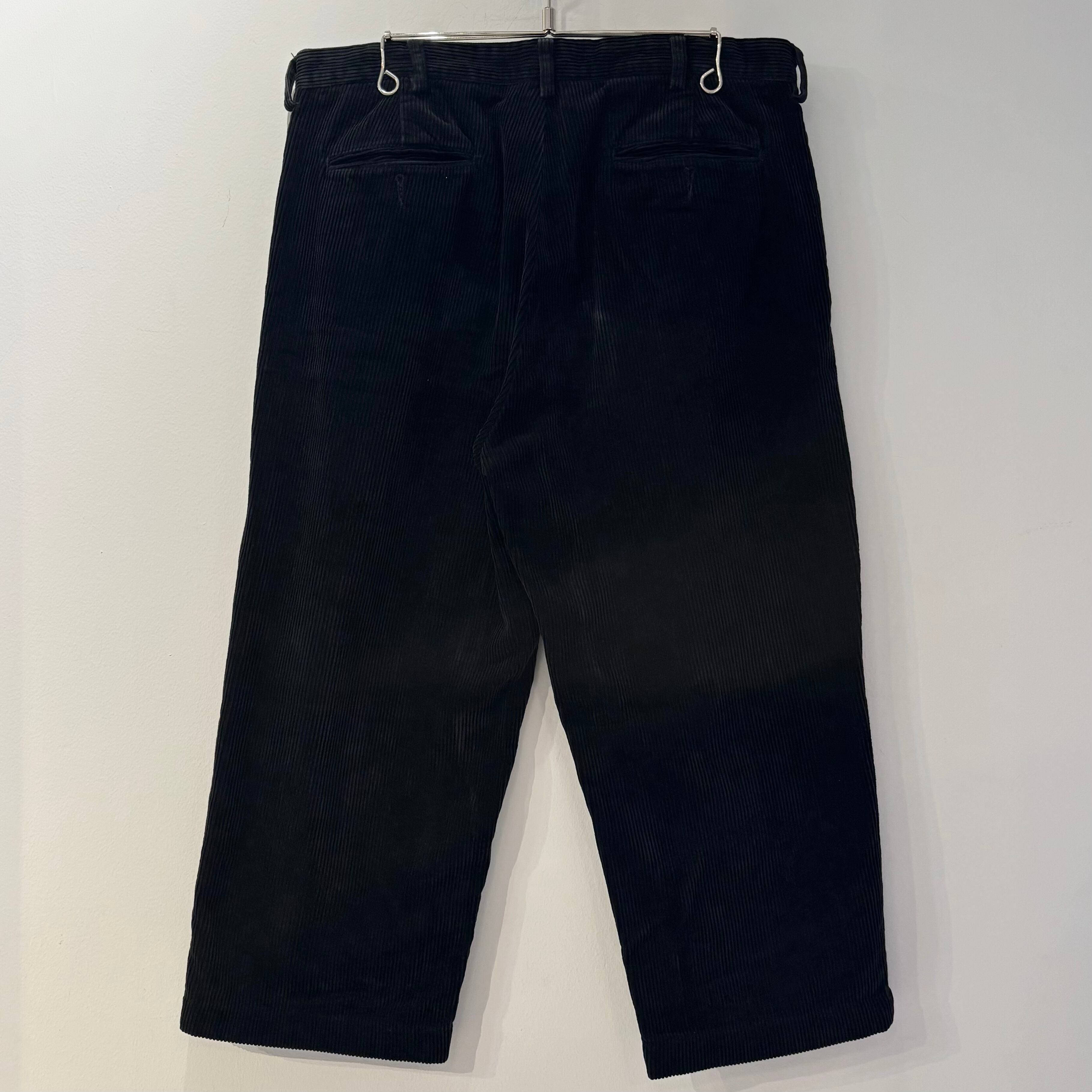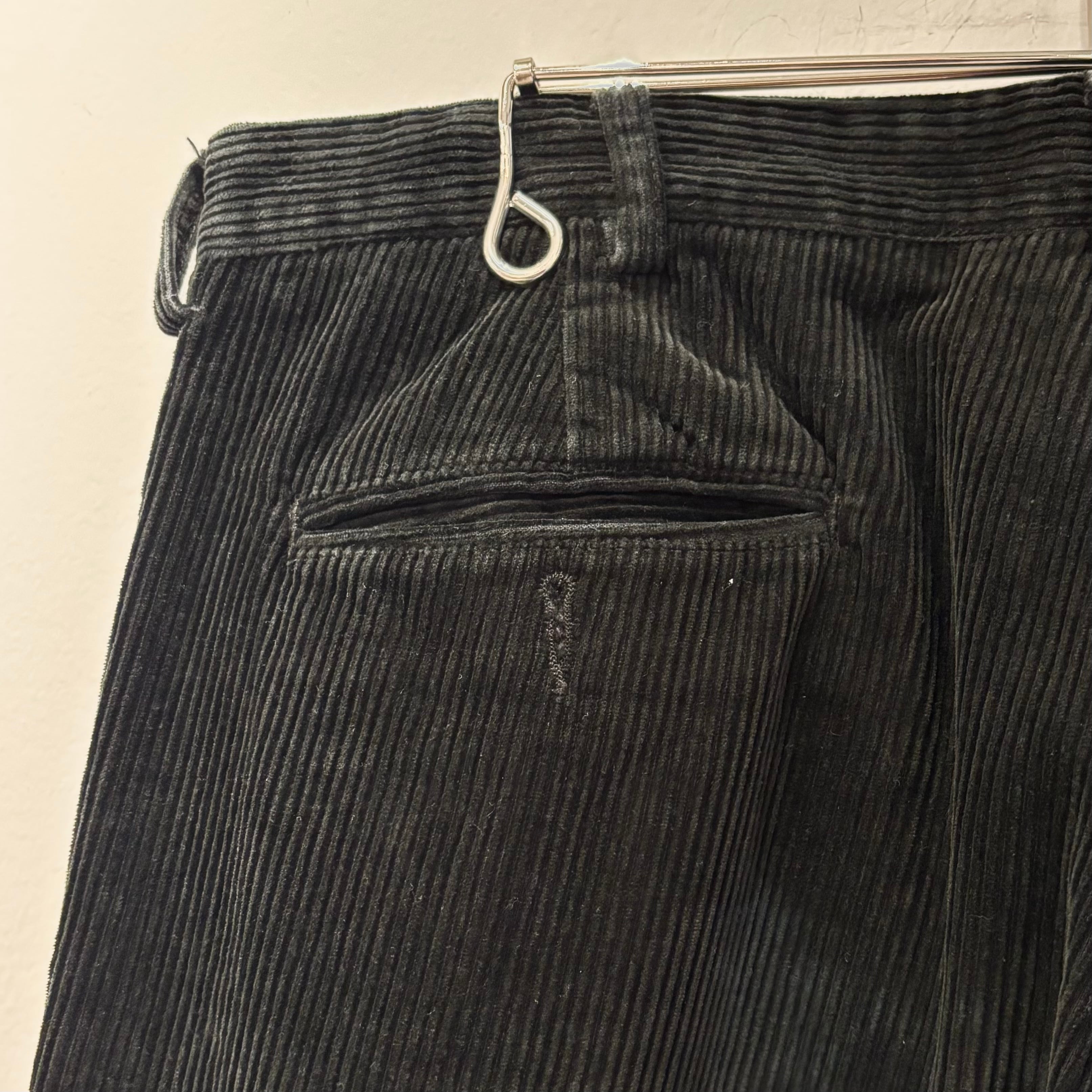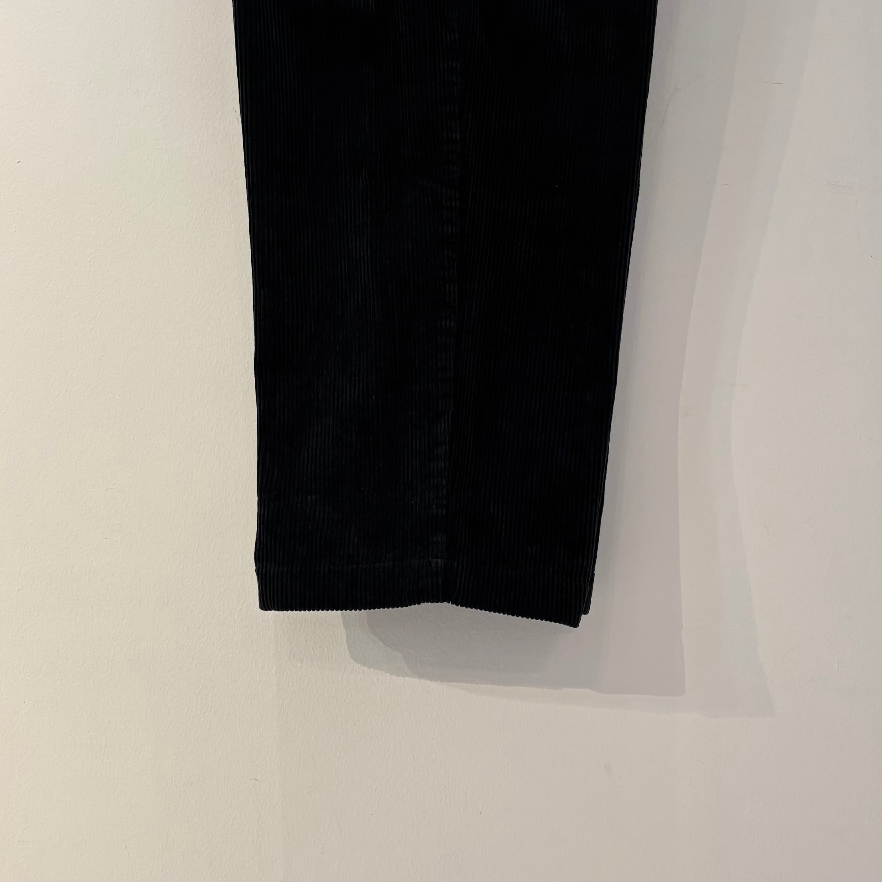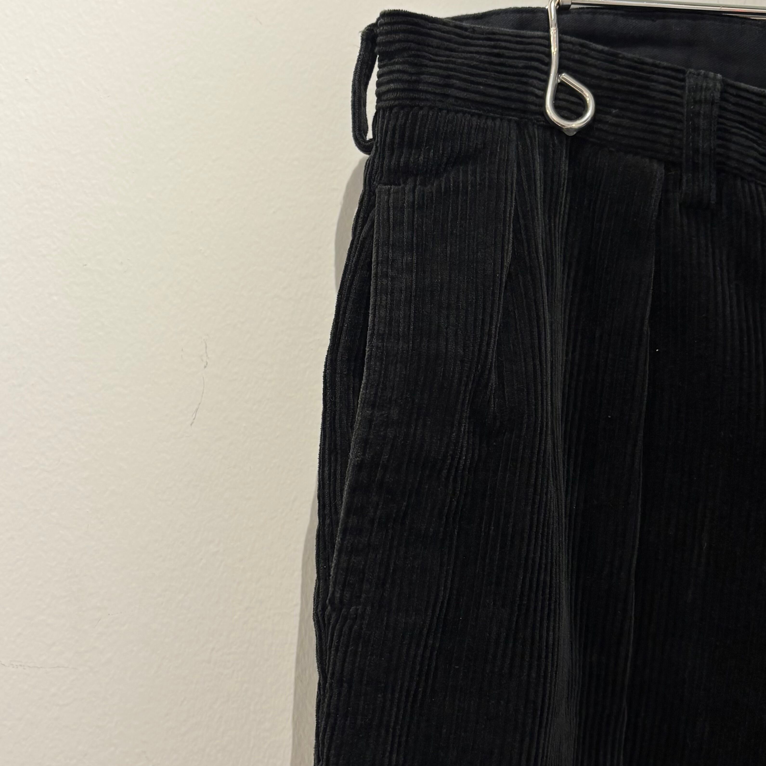 ブラックの太ウネコーディロイ、ツータック、4ポケットのスラックス型デザインです。