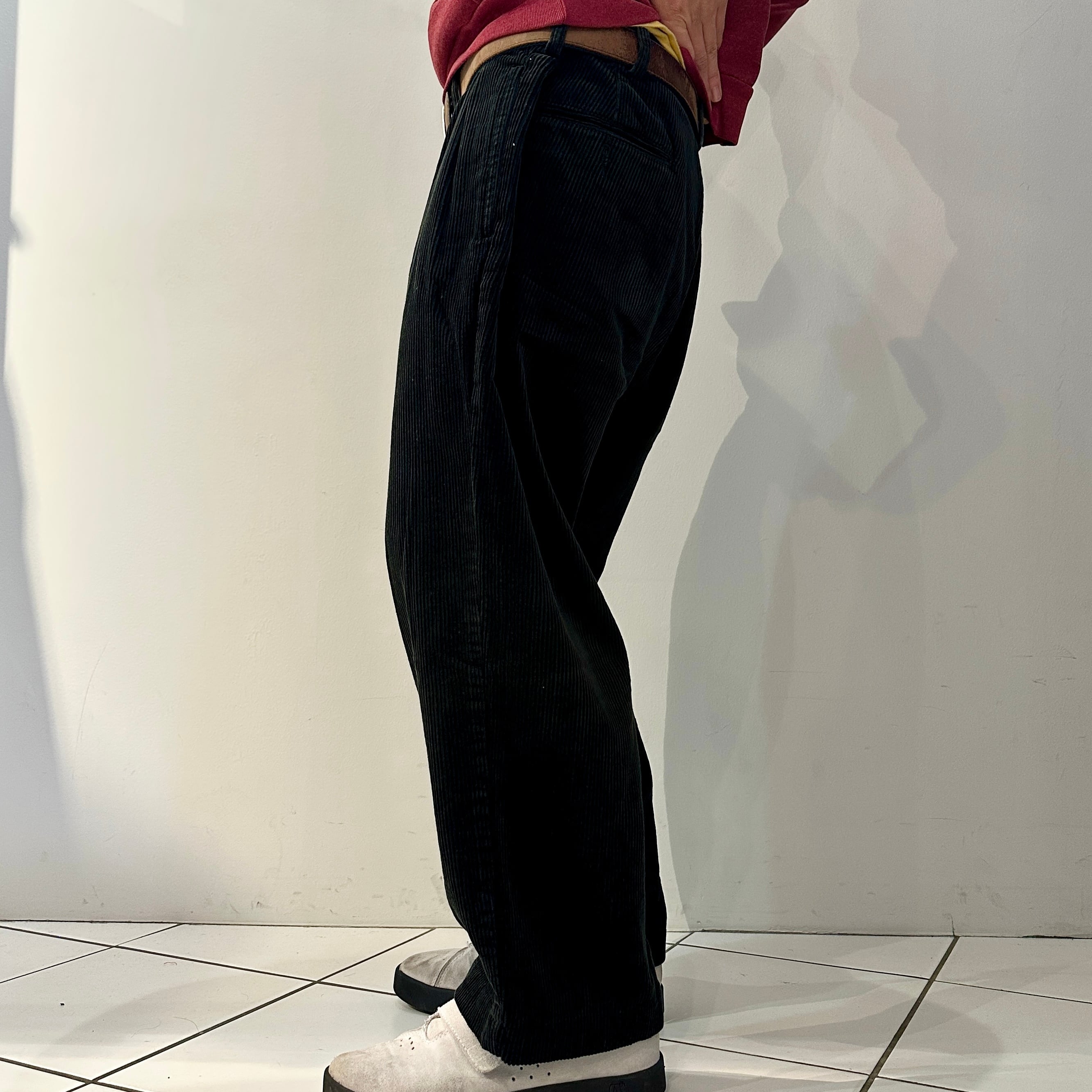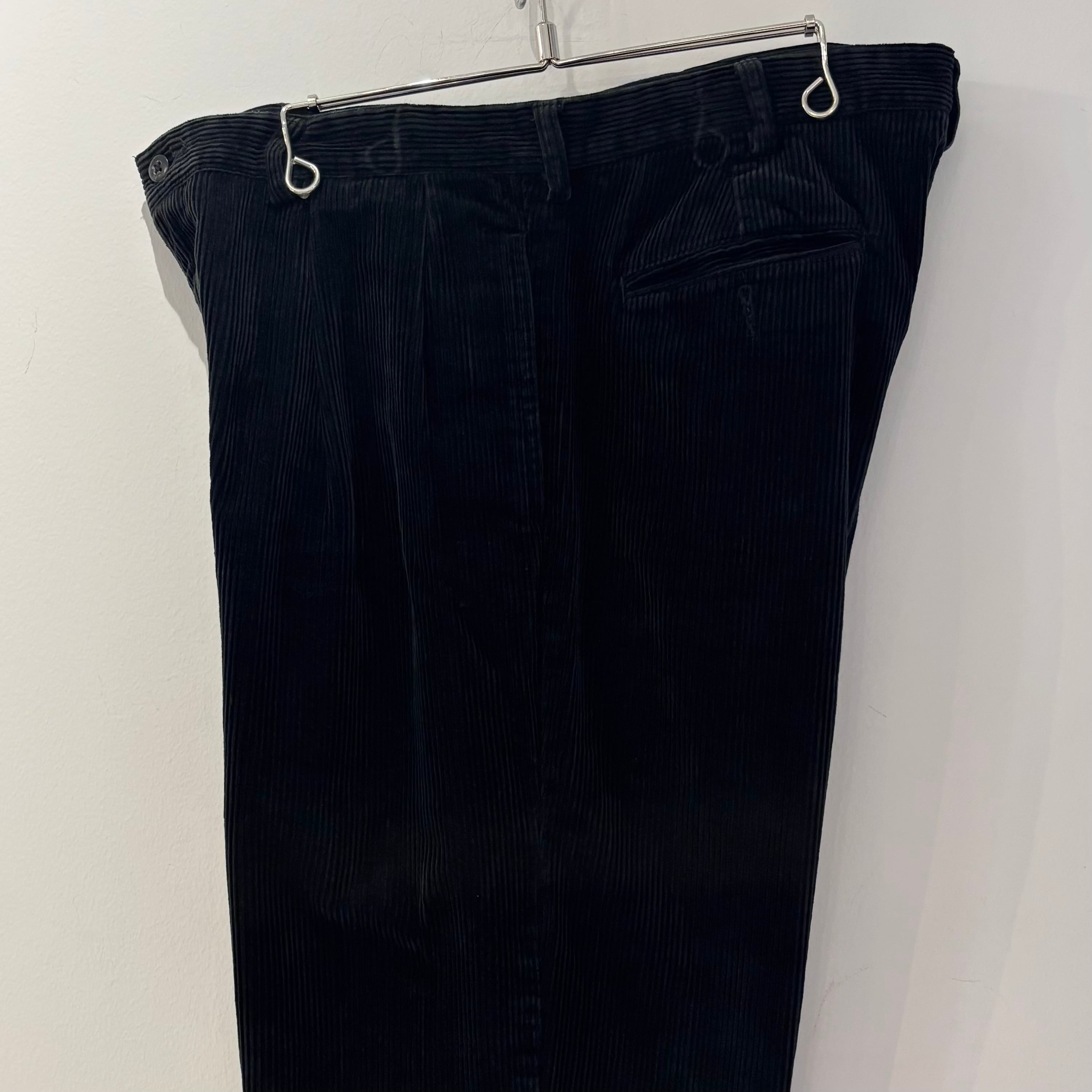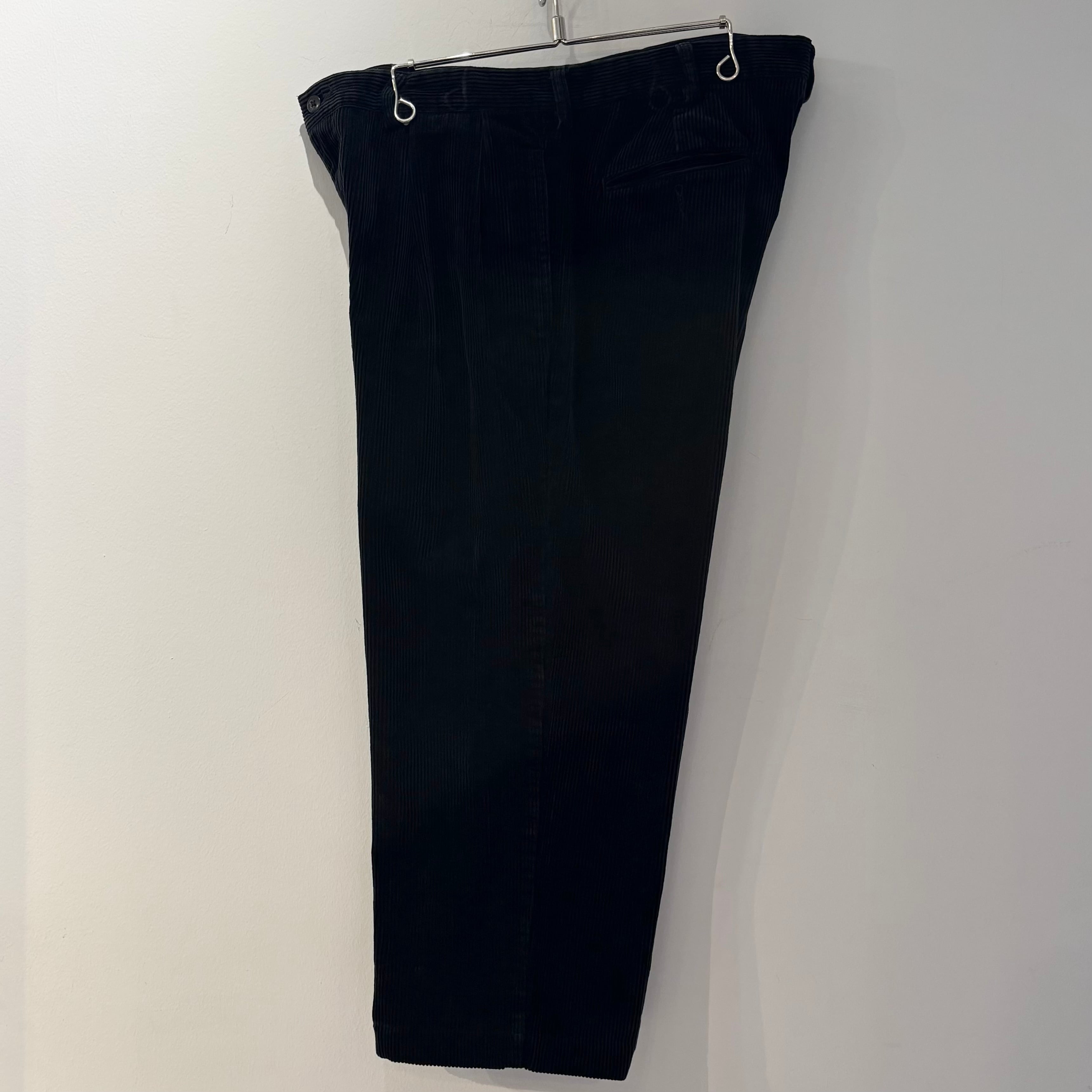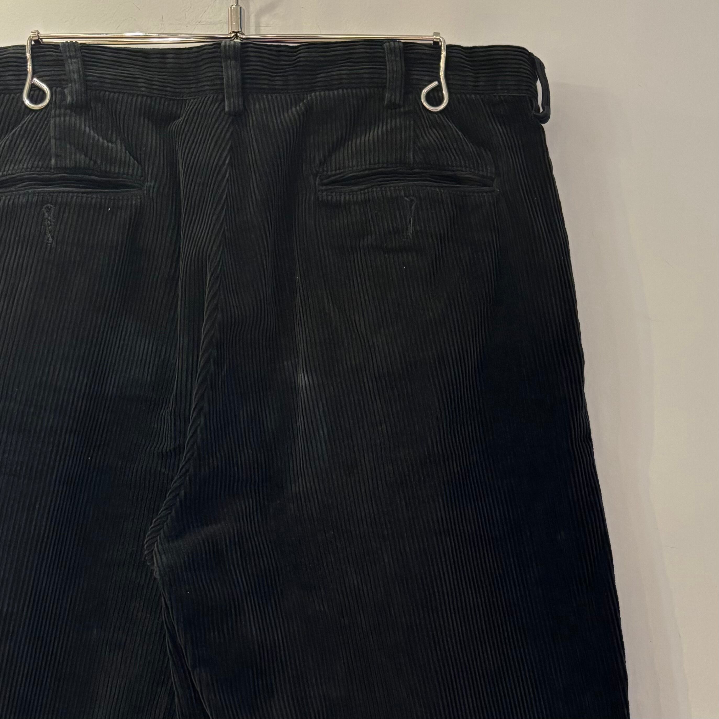 ブラックの太ウネコーディロイ、ツータック、4ポケットのスラックス型デザインです。