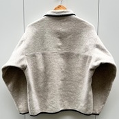 パープルフリースxオリーブグリーンナイロン、左胸ポケットの上にネーム、4つのスナップボタンで開閉するスタンダードデザインです。