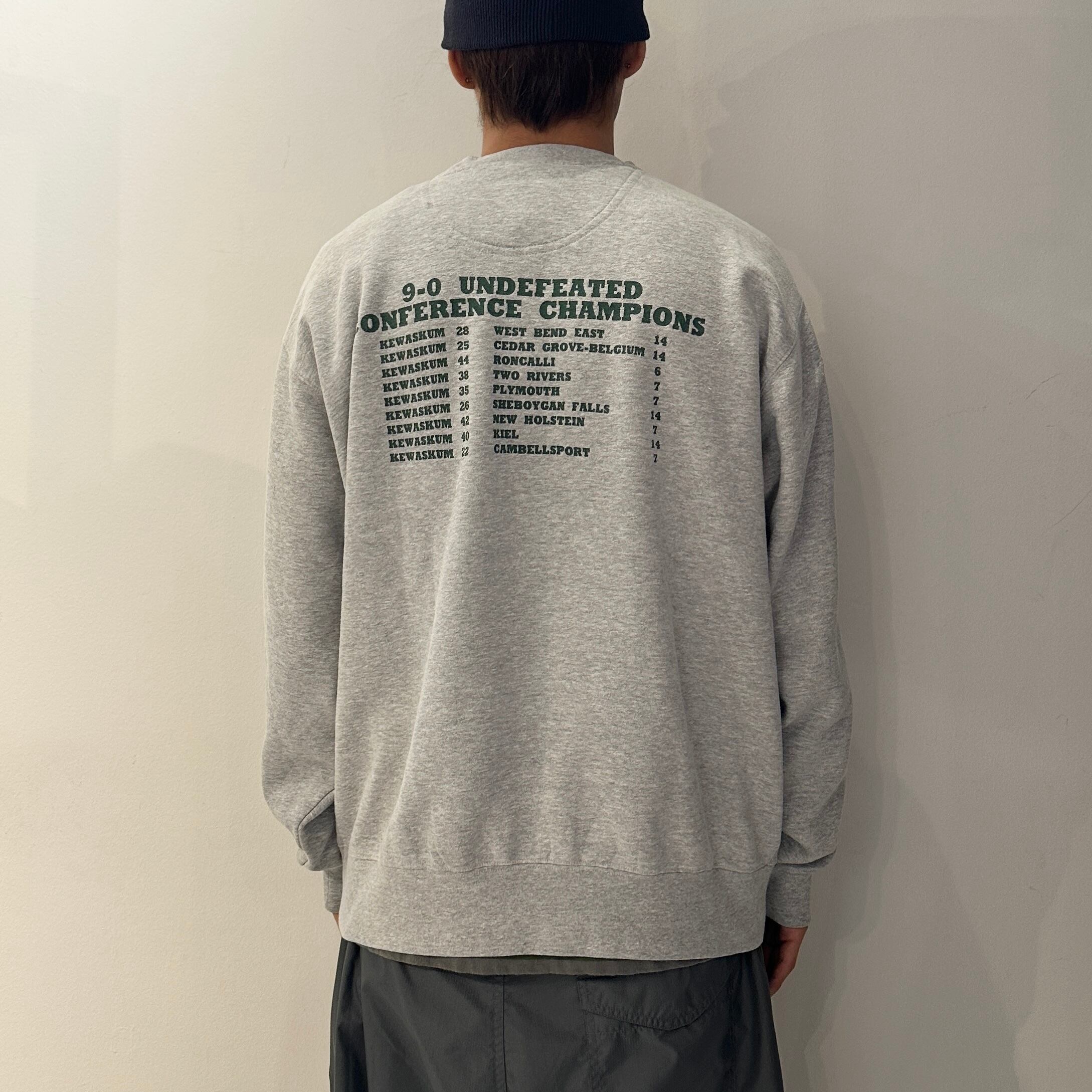 グレーの裏起毛素材、フロントにKEWASKUMとアメフトヘルメット、2005CHAMPIONSプリント、襟のガゼットにスウォッシュ刺繍バックに9試合の成績のプリントが入るデザインです。