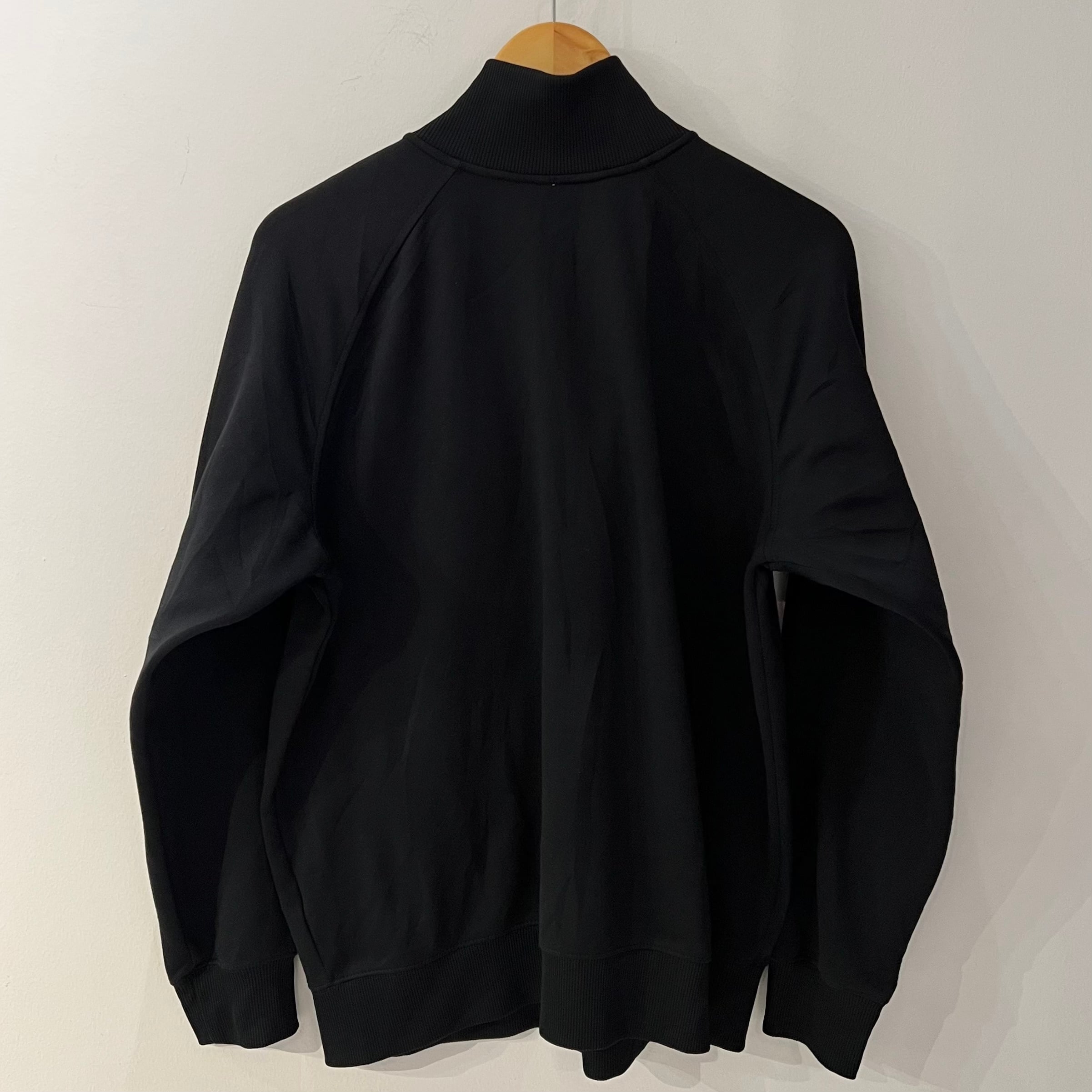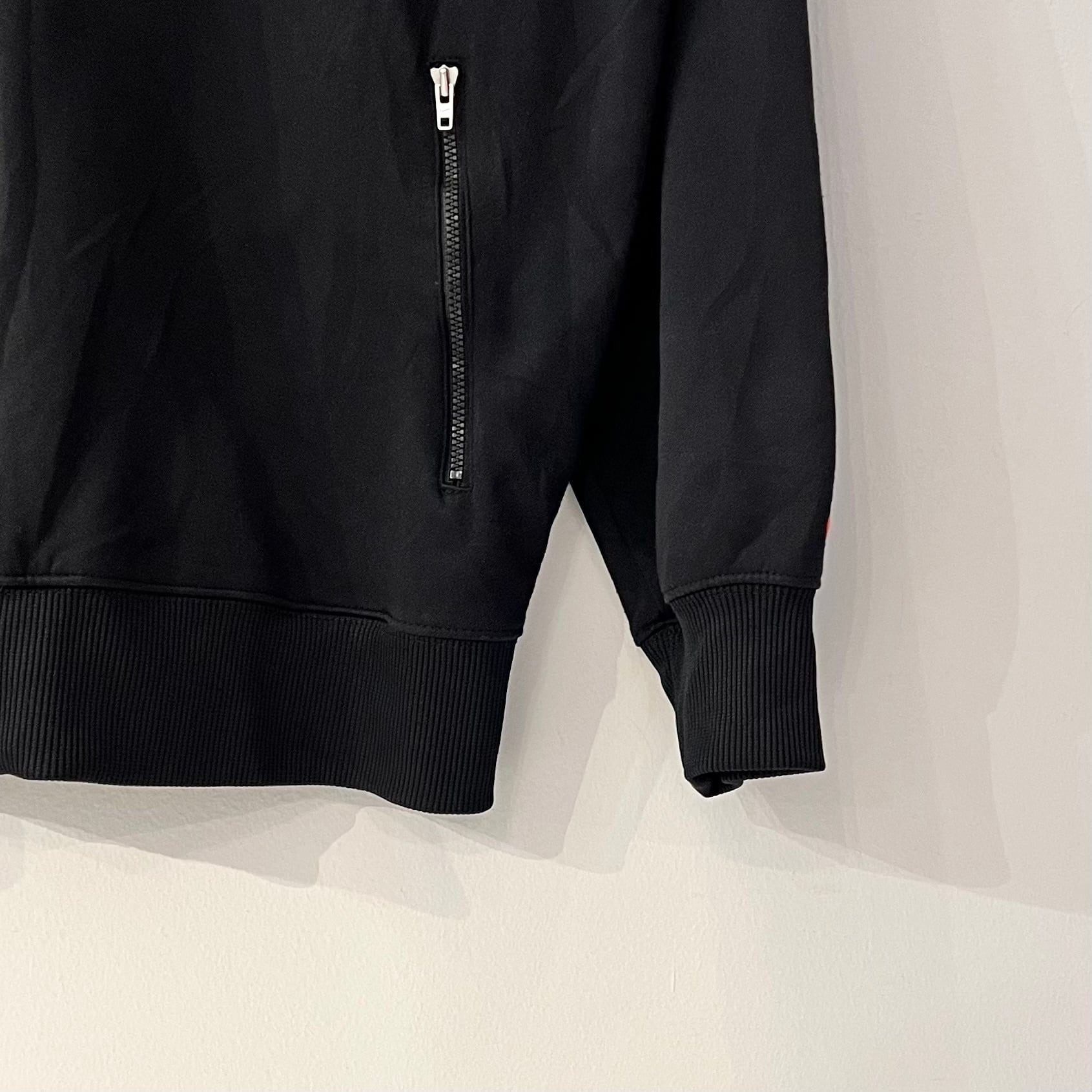 ブラックのジャージ素材、フロントにSANFRANCISCOとSFロゴマークワッペン、スウォッシュ入りメタルジッパースライダー、左袖にスウォッシュ刺繍、ジッパー付きハンドウォームポケットの付いたデザインです。