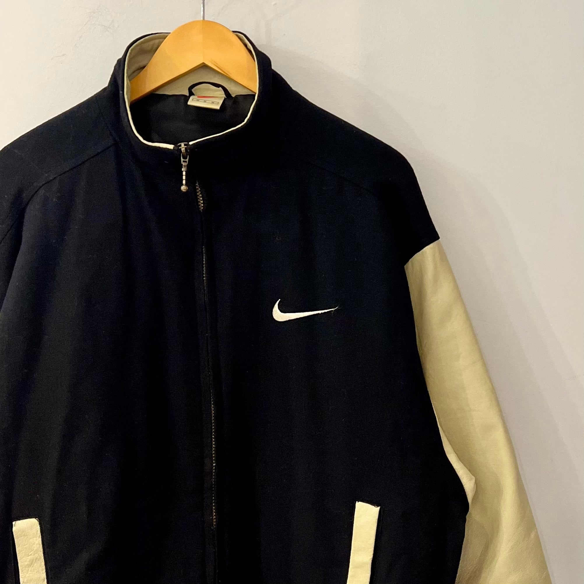 ブラックメルトンxベージュレザー、左胸にスウォッシュ刺繍、バックに大きくNIKEロゴワッペンが入る豪華デザインです。