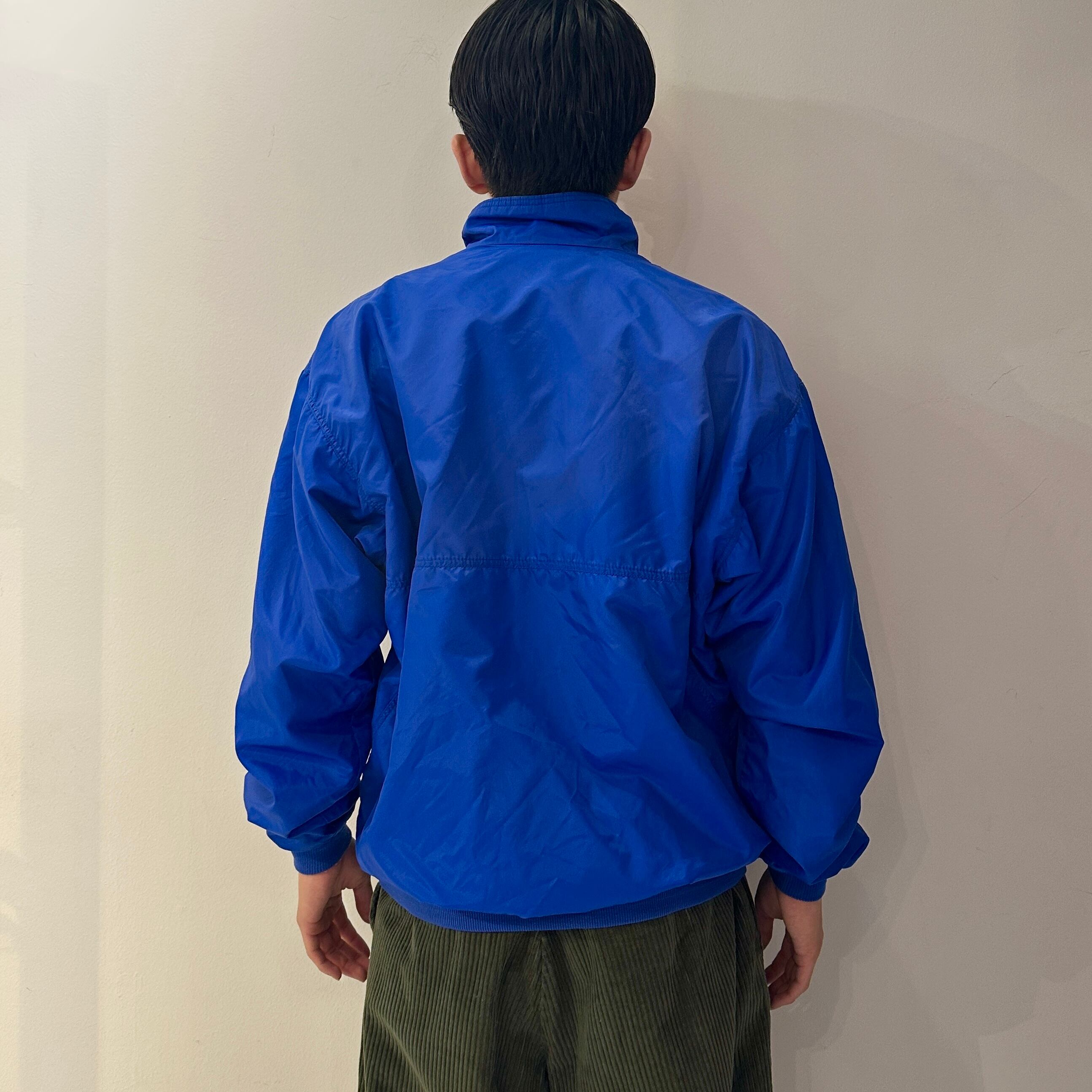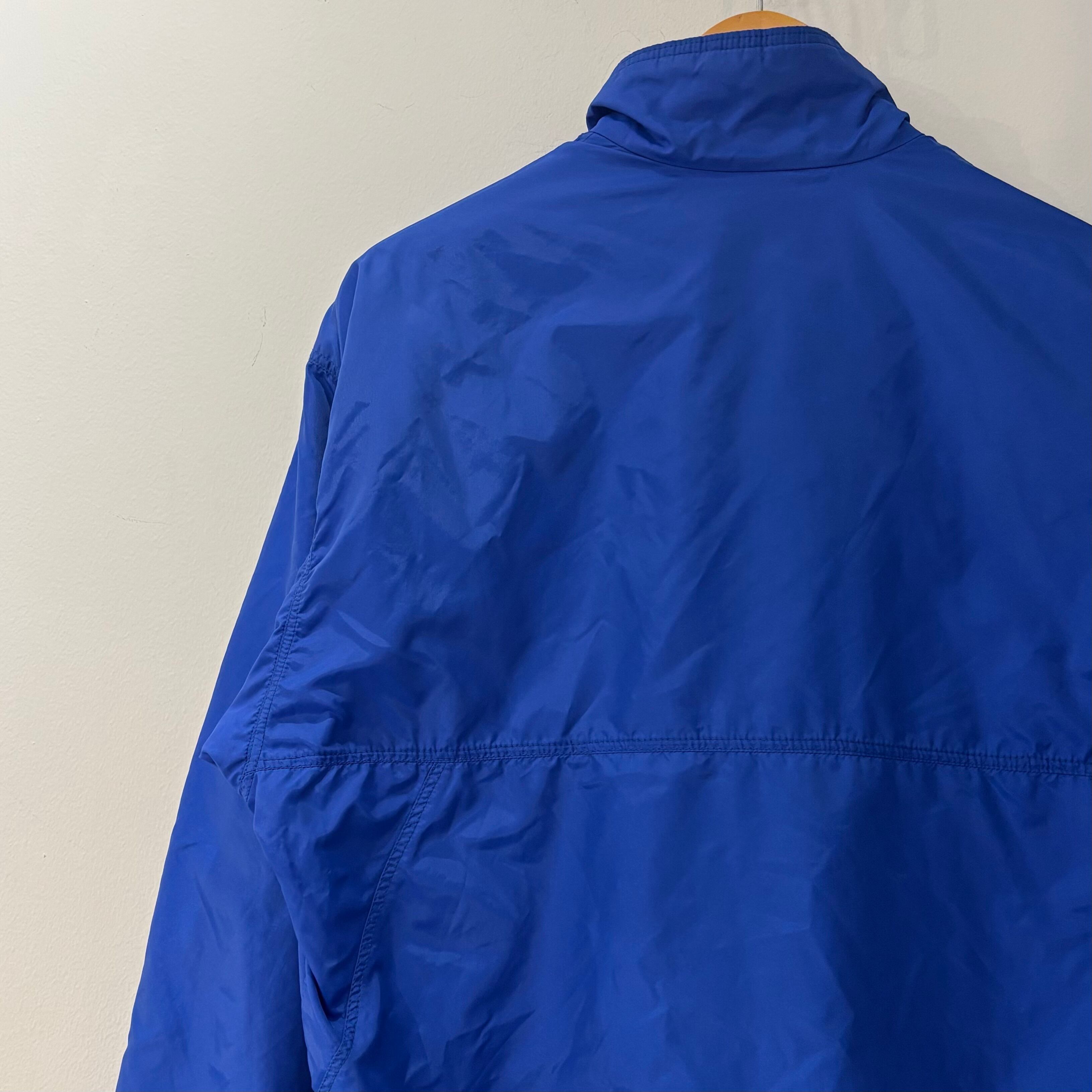 ブルーナイロンxエメラルドグリーンフリース、左胸に旧ロゴネーム、ジッパー付きハンドウォームポケットが付いたスタンダードデザインです。