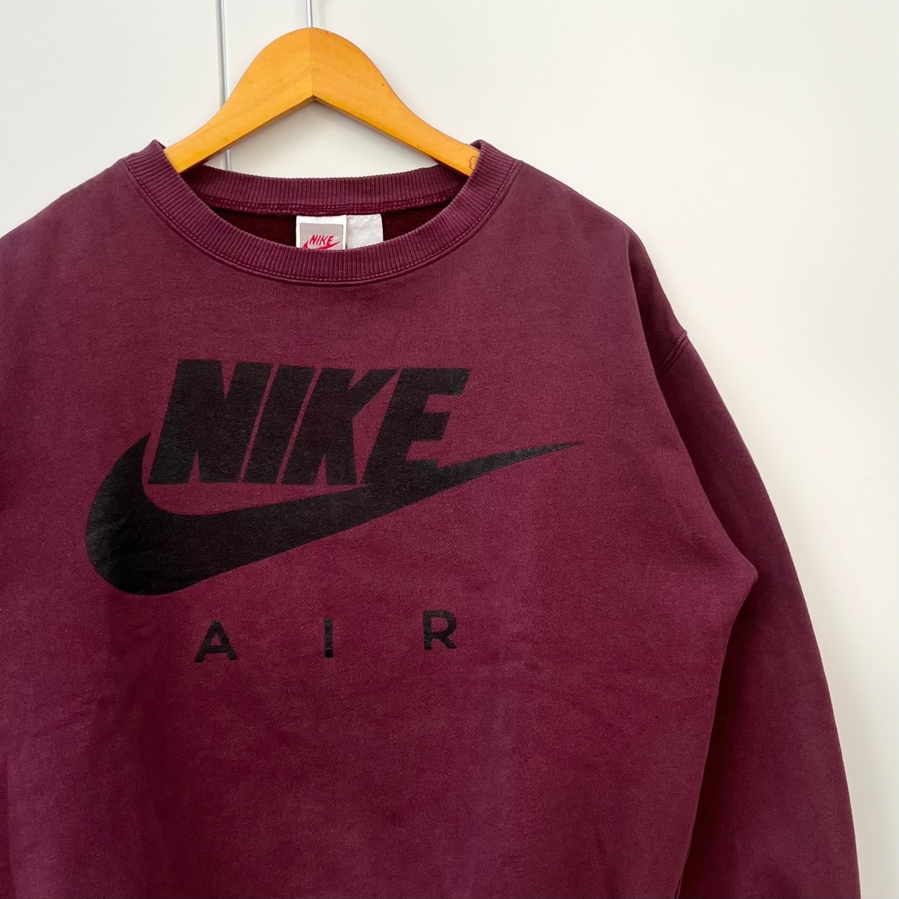 バーガンディのポリエステル混系素材、フロントにNIKE AIRのビッグロゴプリントが入るシンプルデザインです。