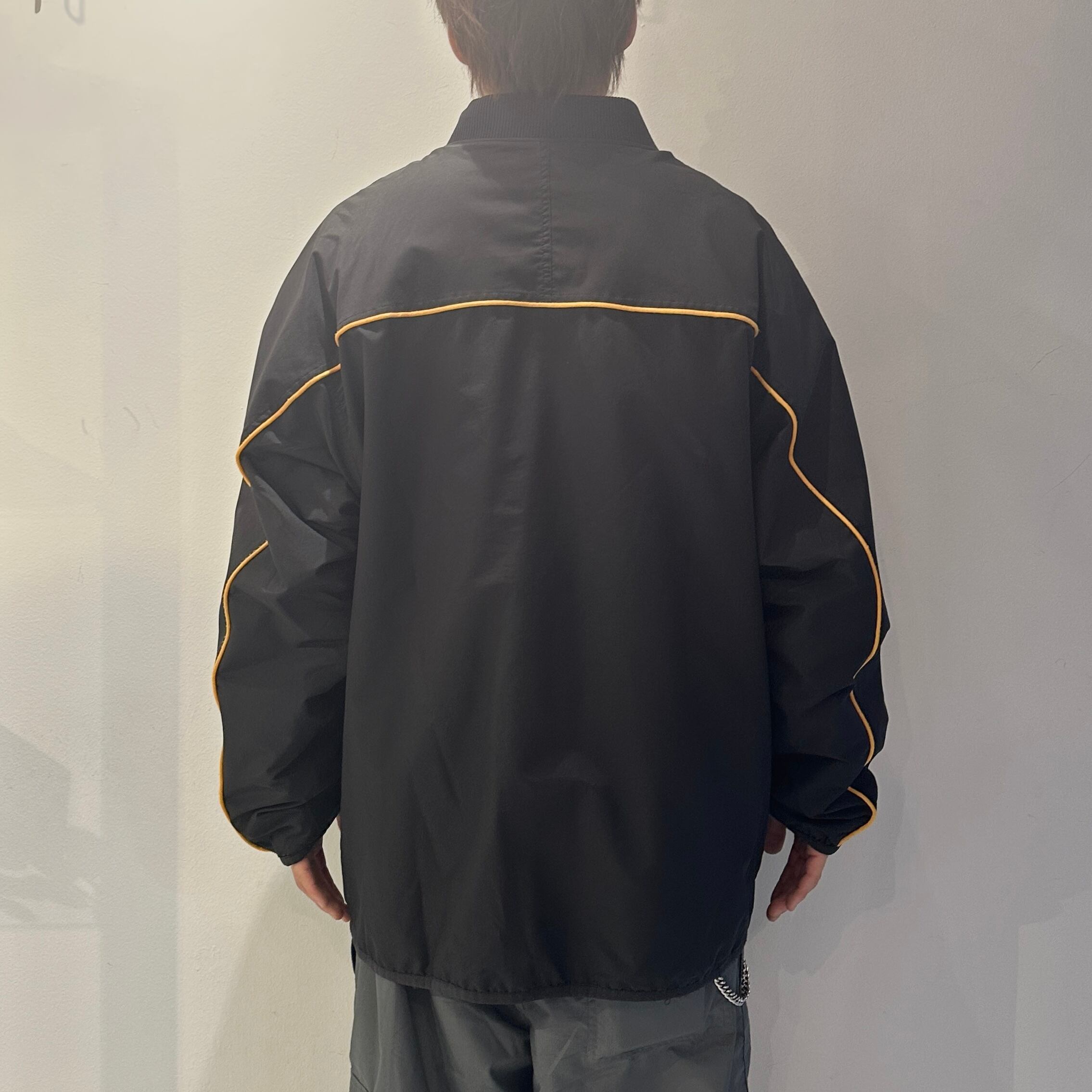 ブラックナイロンxイエローパイピングxイエローフリースのリバーシブル、ブラック面は右胸、イエロー面は左裾にスウォッシュ刺繍、ブラック面の左胸にペンギンズロゴマーク刺繍、イエロー面のバック襟元にPENGUINSロゴ刺繍、両面にハンドウォームポケットが付いたデザインです。