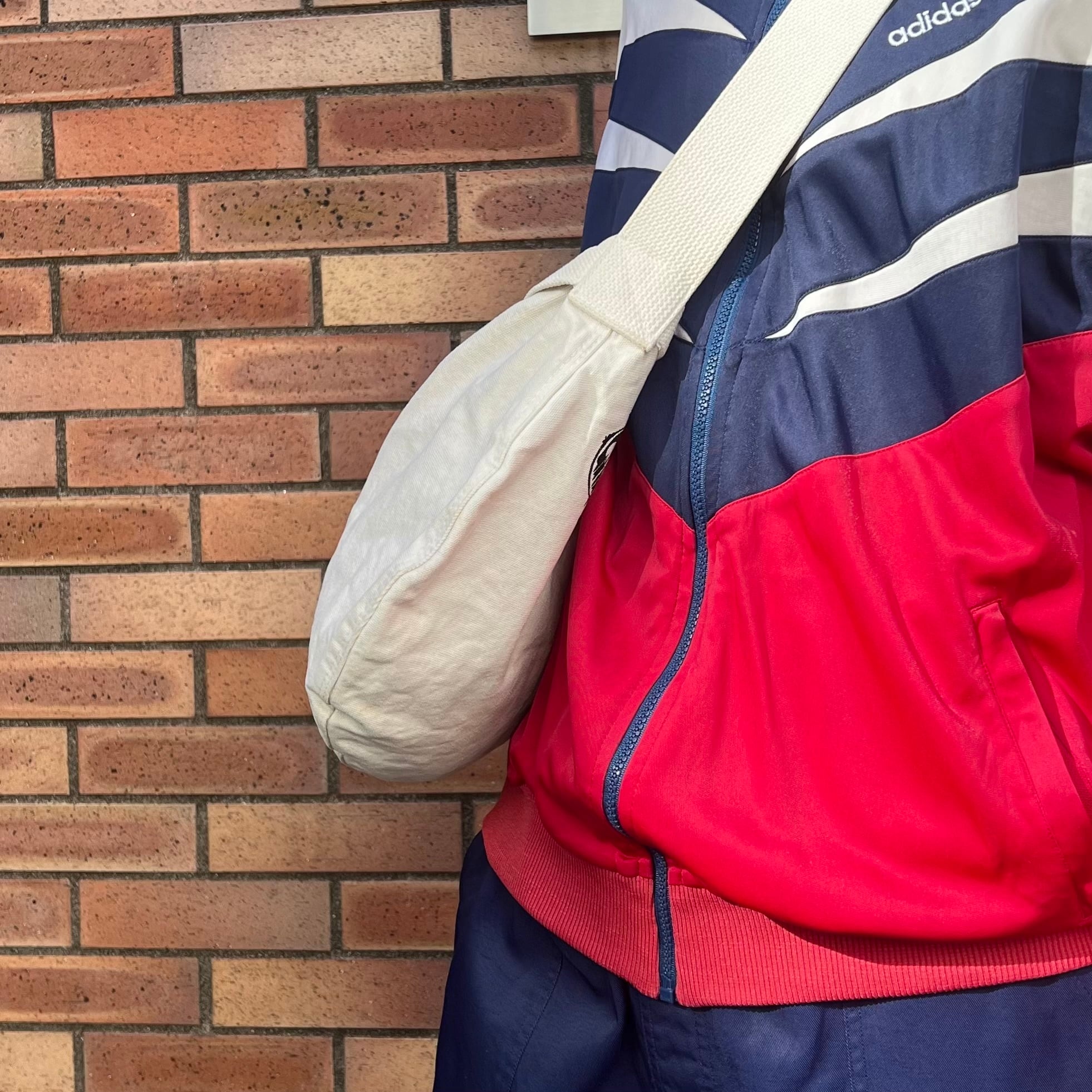 ナチュラルハンプのコットン素材、フロントにワールドツアーロゴプリント、バックにCRANKロゴプリント、左サイドにネーム、隣にCRANKネーム、スナップボタンで開閉のポケット、ハンドストラップとショルダーストラップの2ウェイのデザインです。