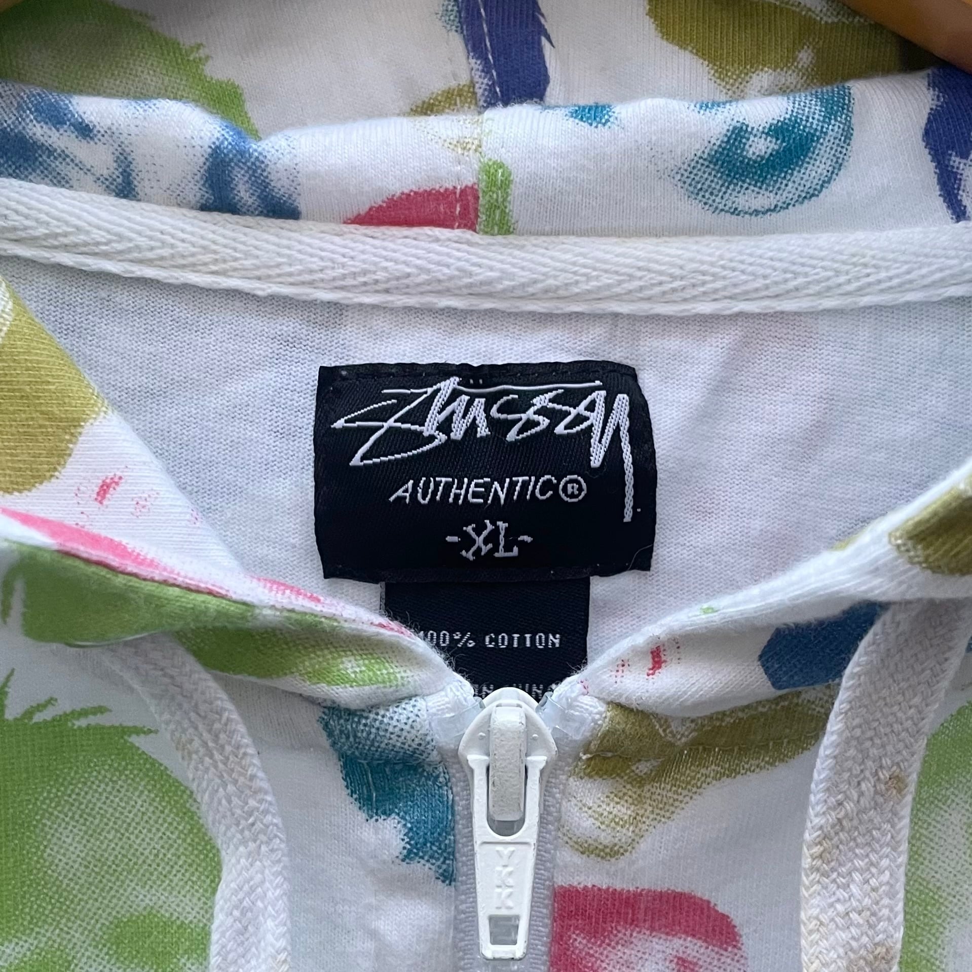 STUSSY/ステューシー 総柄 天竺 ジップ フード 2000年代 (DEADSTOCK)