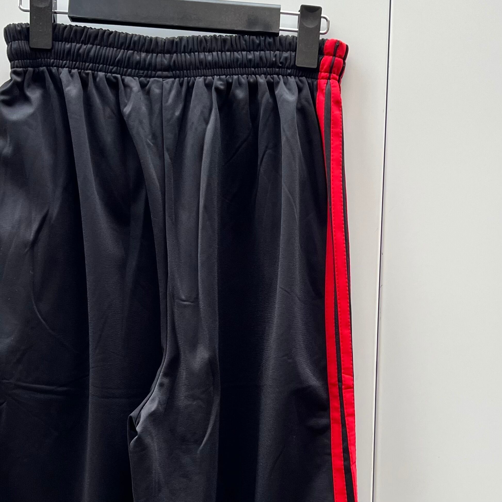ブラックxレッド3ストライプス、左のポケット脇にトレフォイルとロゴ刺繍、ハンドウォームポケットの付いたスタンダードデザインです。