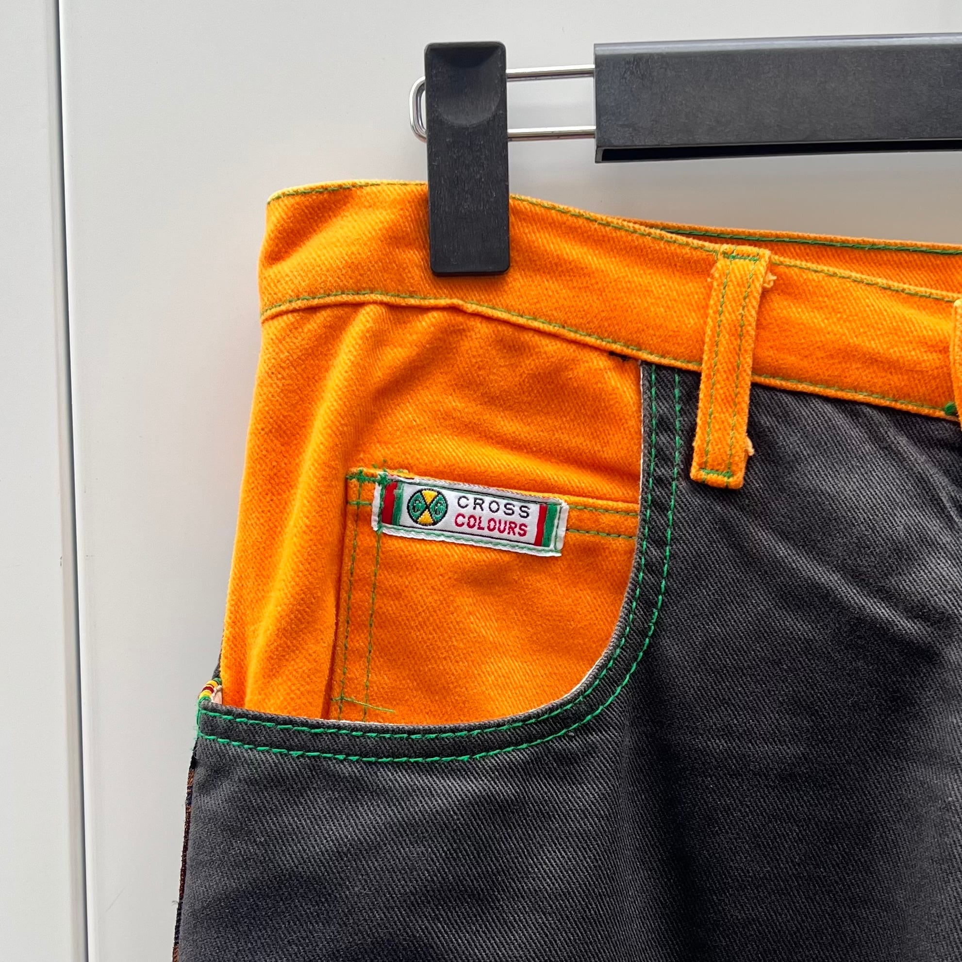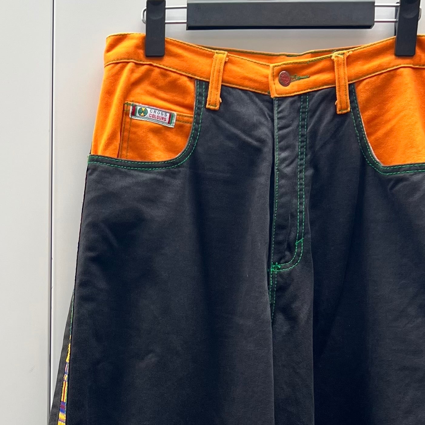 CROSS COLOURS/クロスカラーズ バギーフィット 切り替えジーンズ 90年代 Made in USA (USED)