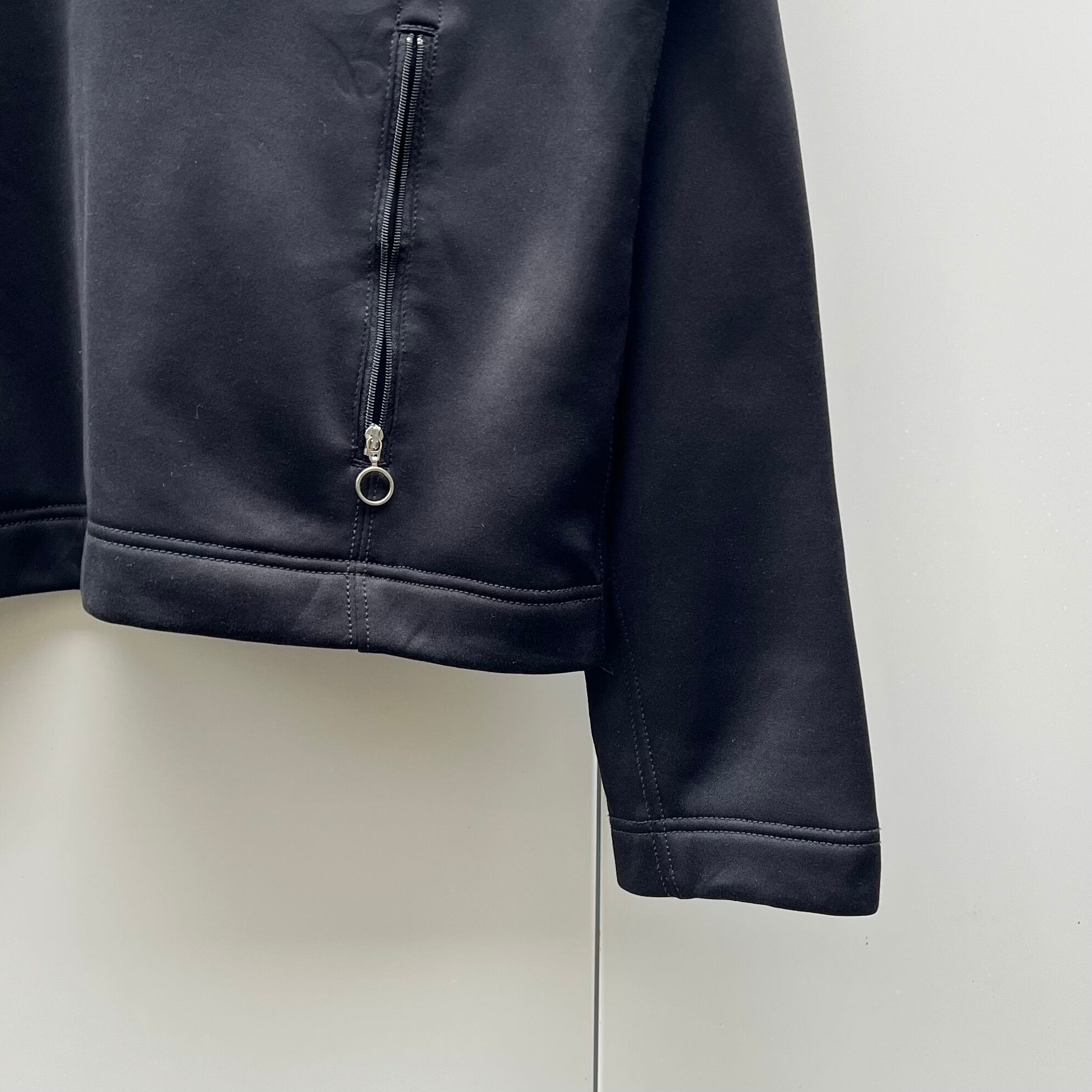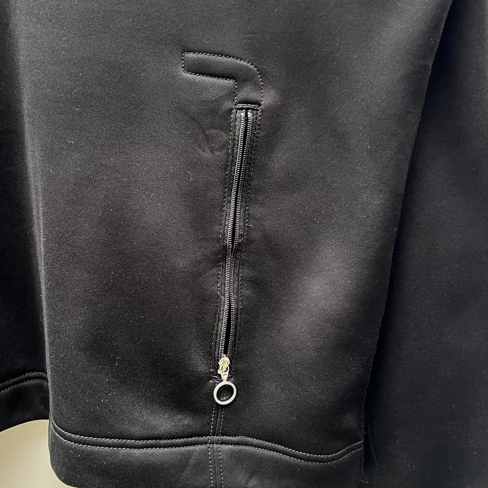 ブラックxベージュフリース、左胸に同色のスウォッシュプリント、ジッパー付きハンドウォームポケット、スウォッシュプレートのジッパースライダーを使用したデザインです。