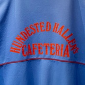 ライトブルーのジャージ素材xレッドパイピング、左胸と両袖にOREGON USAロゴのワッペン、フロントにスポンサー企業?プリント、バックに大きくアーチ型の企業ロゴプリントが入るデザインです。