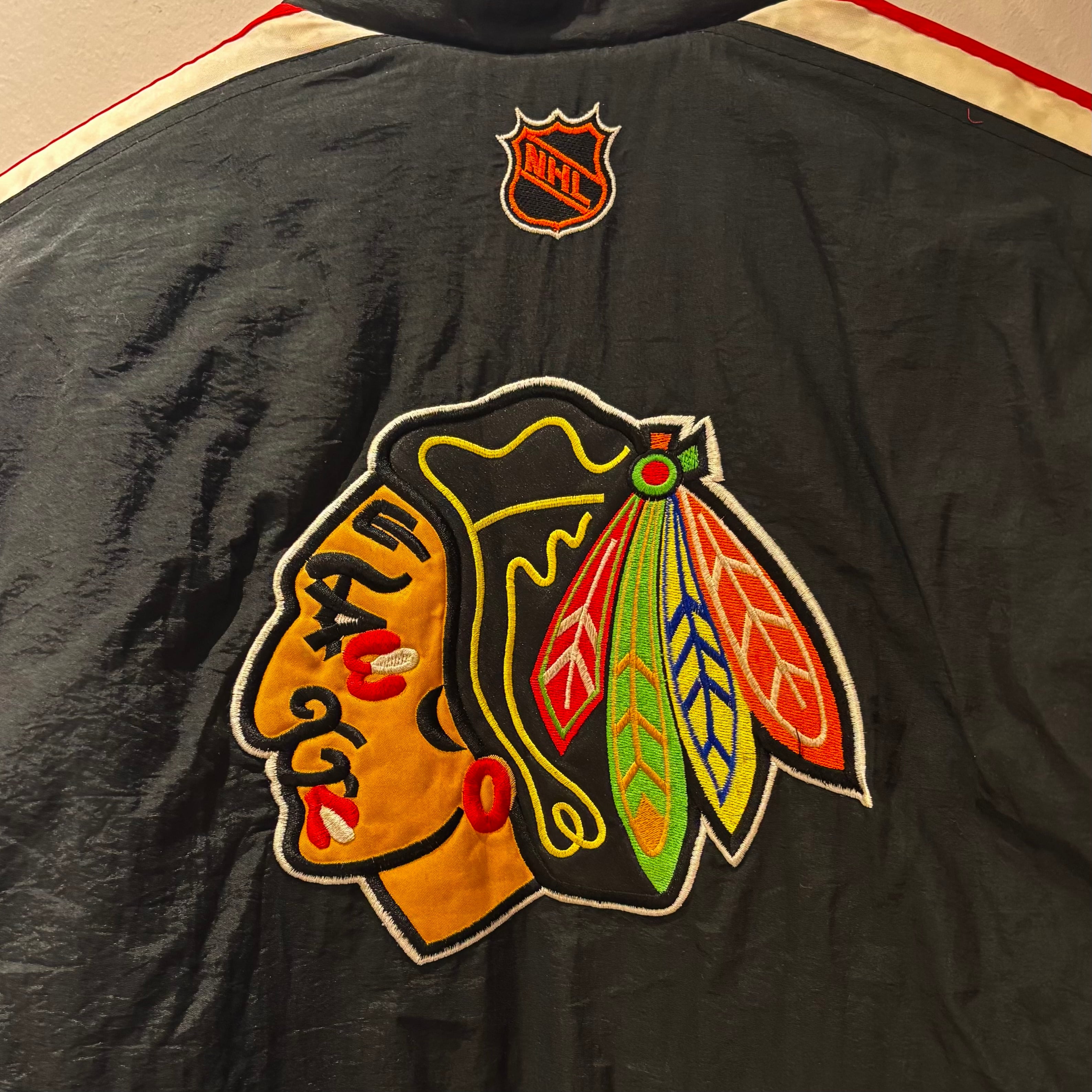 90年代のスターター社製、NHLシカゴブラックホークスの中綿ジャケットになります。