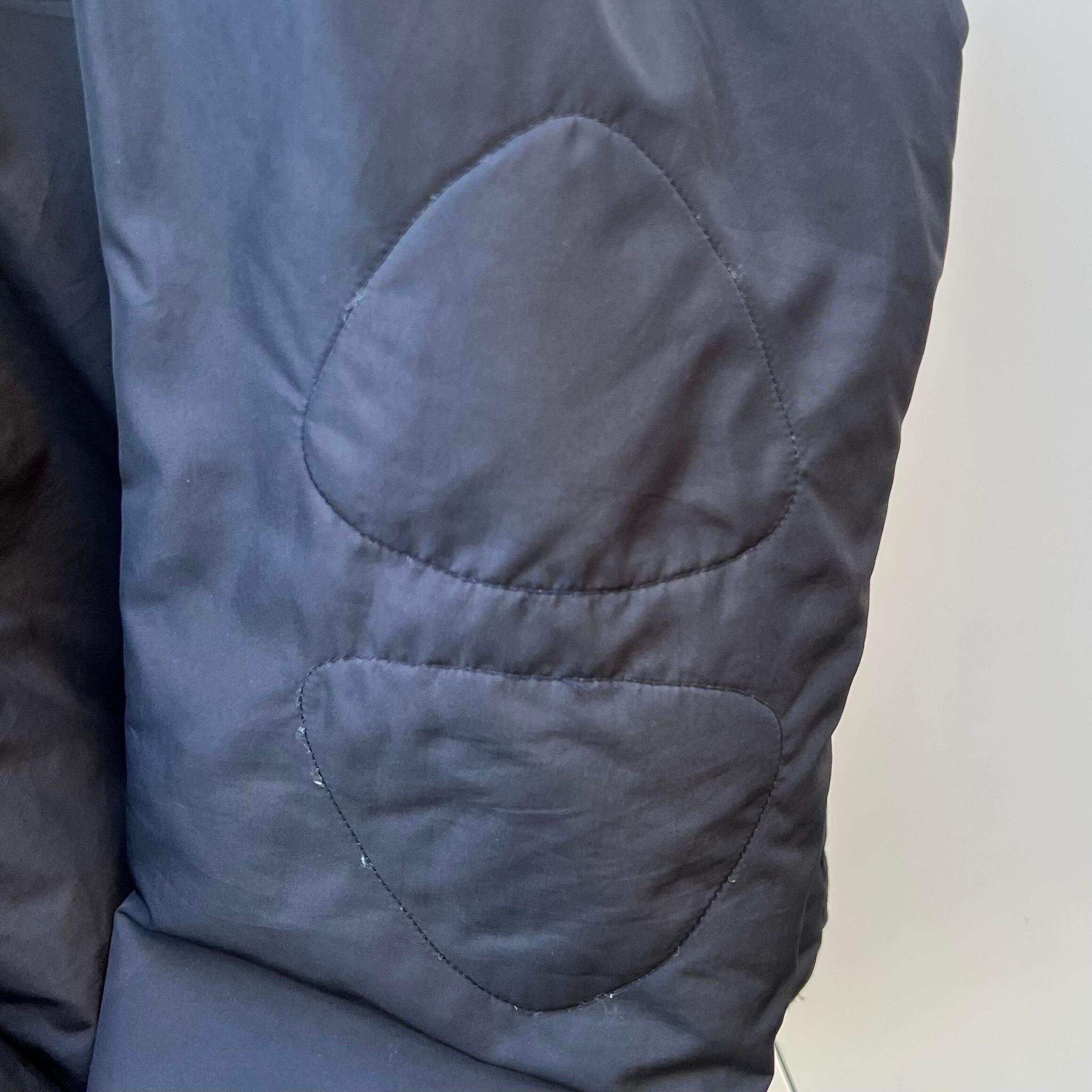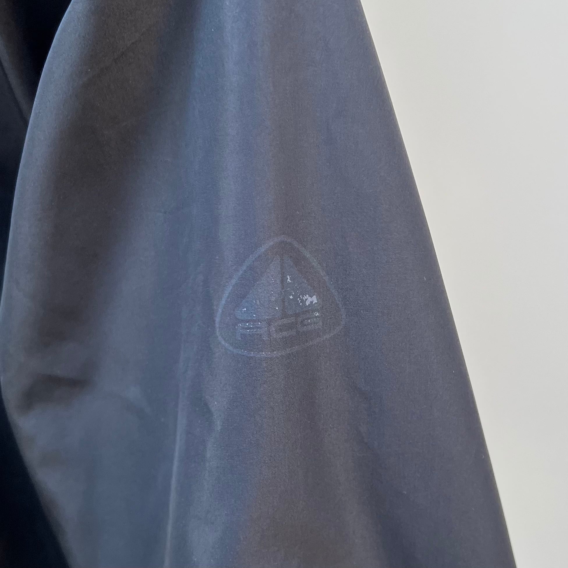 袖のロゴのプリントが剥がれています。その他、着用感が見られますが、目立ったヨゴレやダメージは見られません。