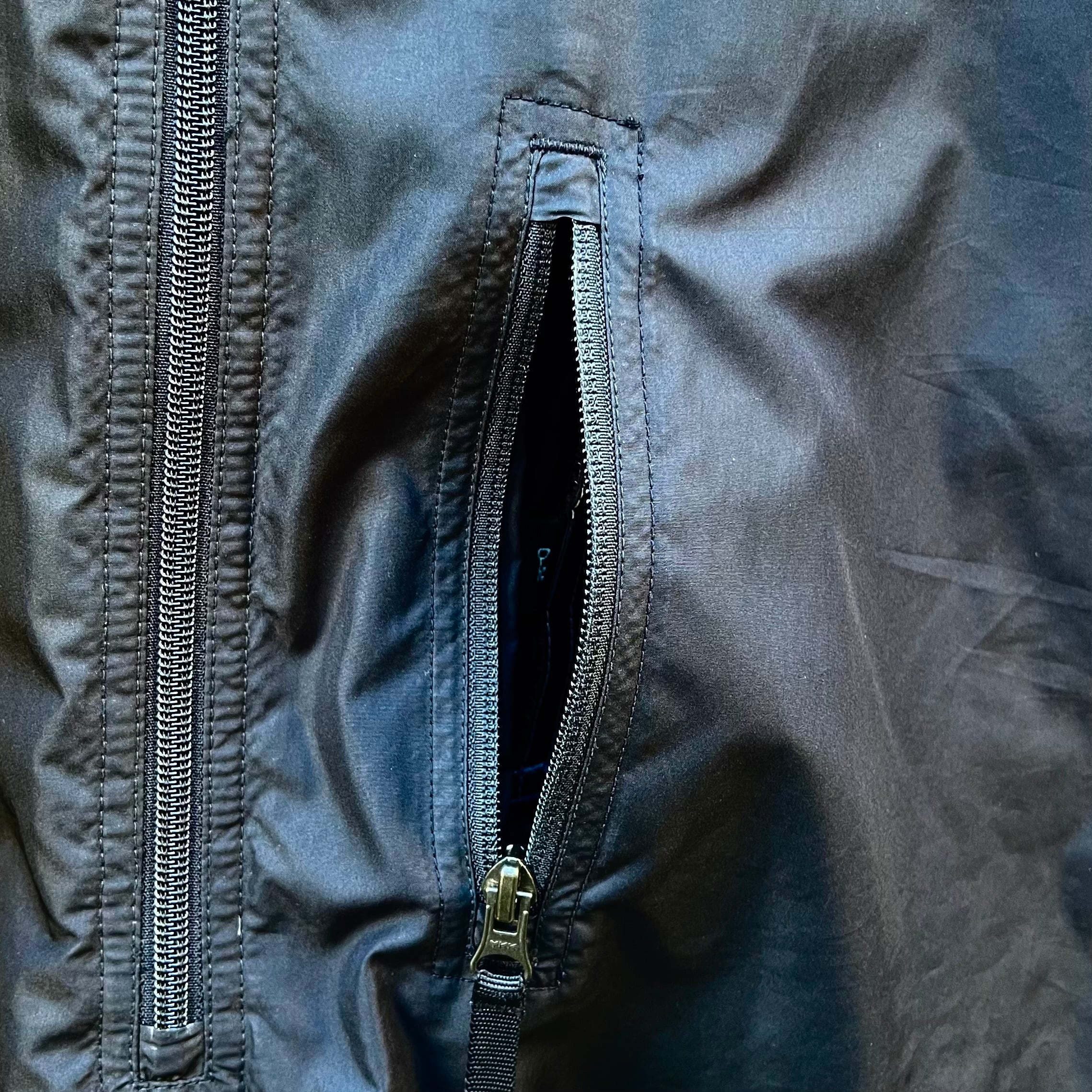 ・左胸にジッパー付きポケット、ロゴ入りジッパースライダー