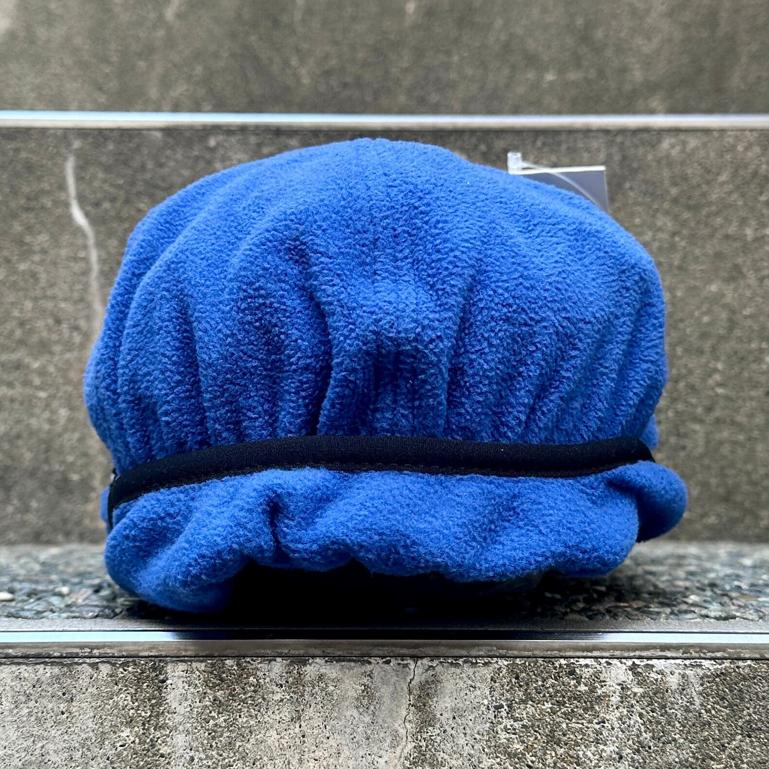 ブルーのフリース素材、フロントにスウォッシュ刺繍、サイドからバックにかけて別生地付く2ウェイで使用可能なデザインです。