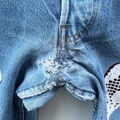 股のダメージをリベアーしています。その他、着用感及び細かなダメージが見られますが、目立ったダメージやヨゴレは見られません。