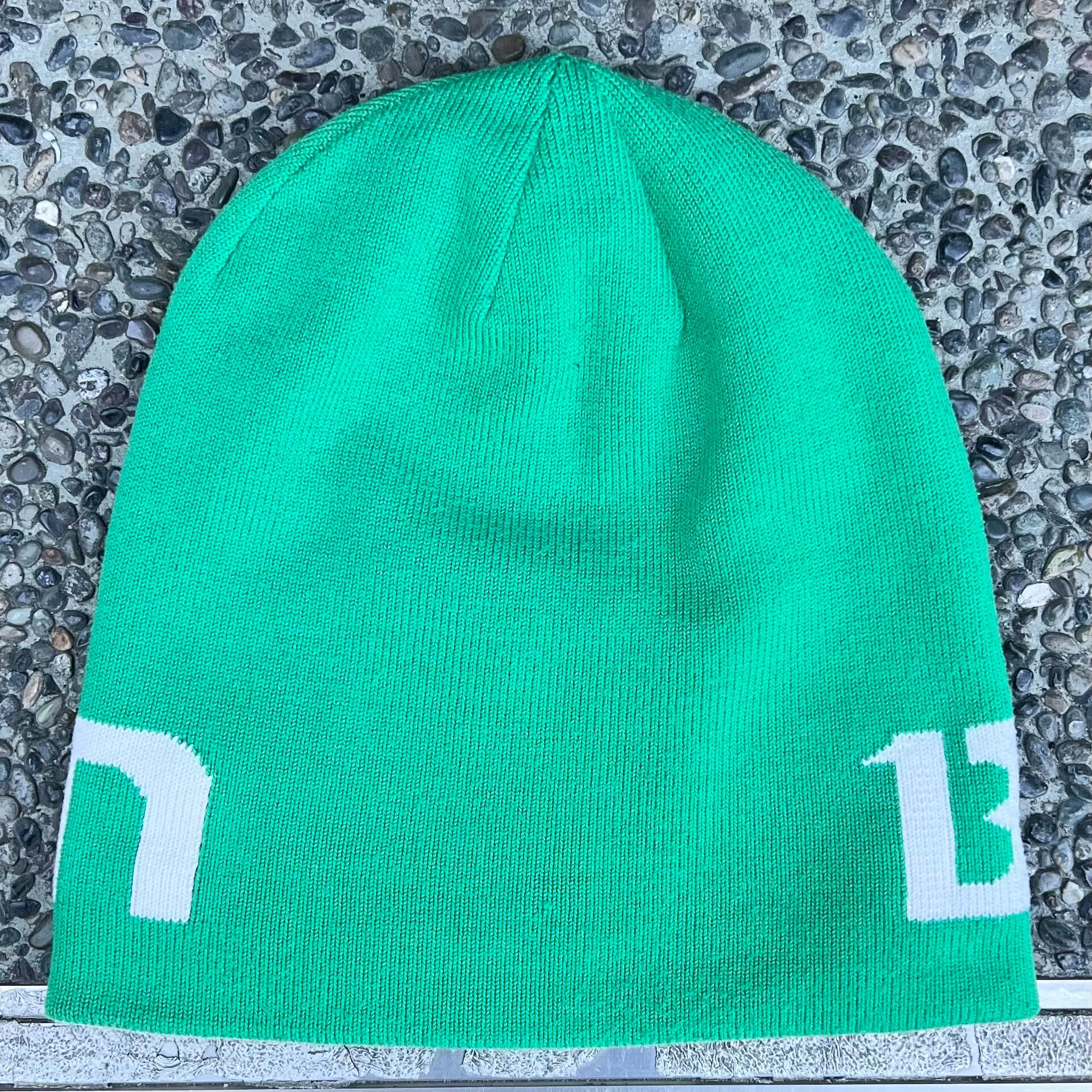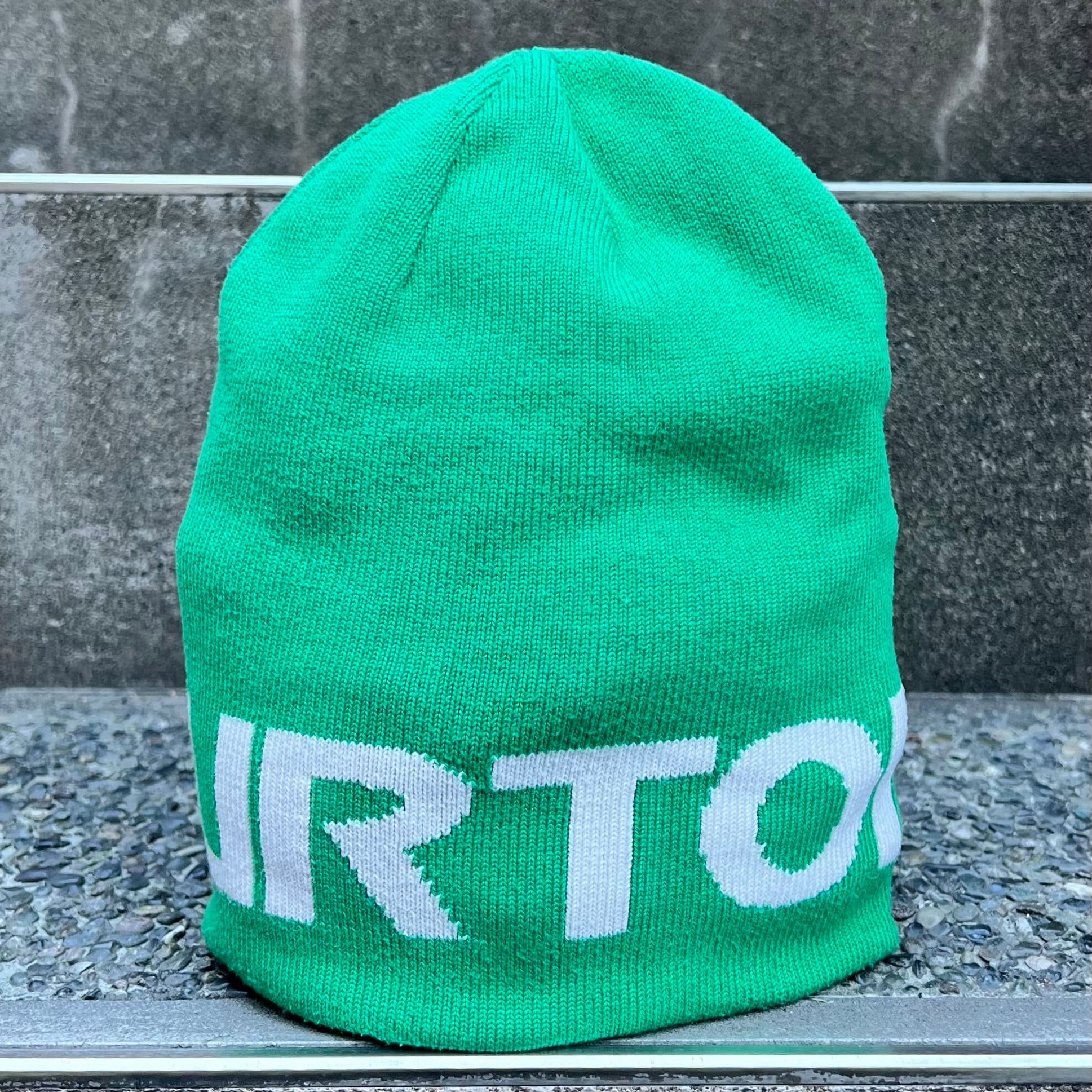 グリーン/ホワイトxホワイト/グリーンのリバーシブル、グリーン面にBURTONロゴ、ホワイト面にロゴマークのシンプルデザインです。