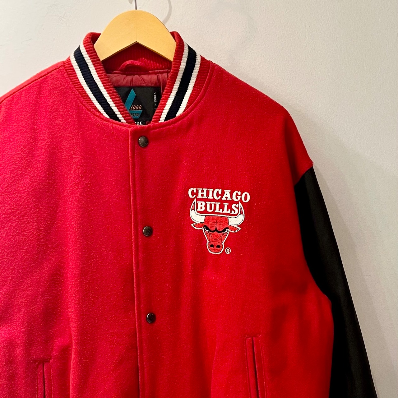 90年代のロゴアスレチック社製、NBAシカゴブルズのスタジャンになります。