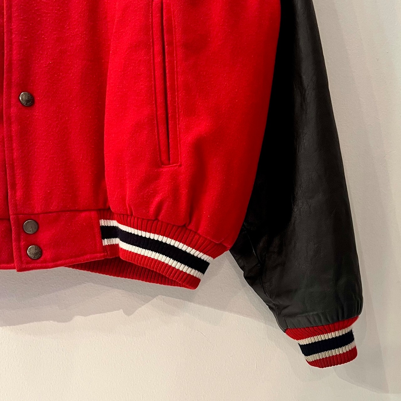 ・レッドメルトンxブラックレザー袖/ホワイトライン