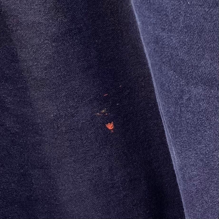 腹部、左袖にヨゴレが見られます。その他、着用感が見られますが、目立ったヨゴレやダメージは見られません。