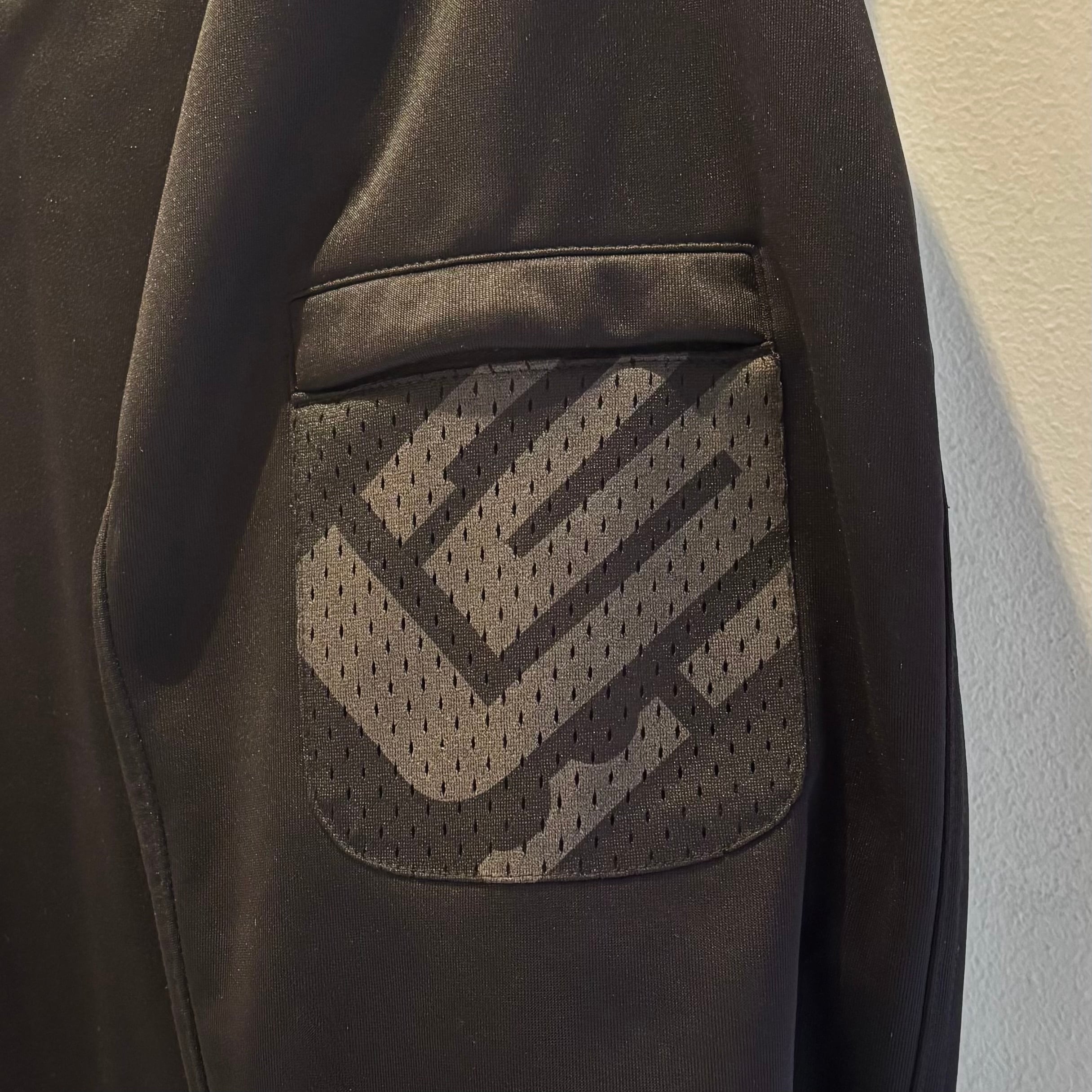 ・左袖にロゴマーク入りのジッパー付きポケット