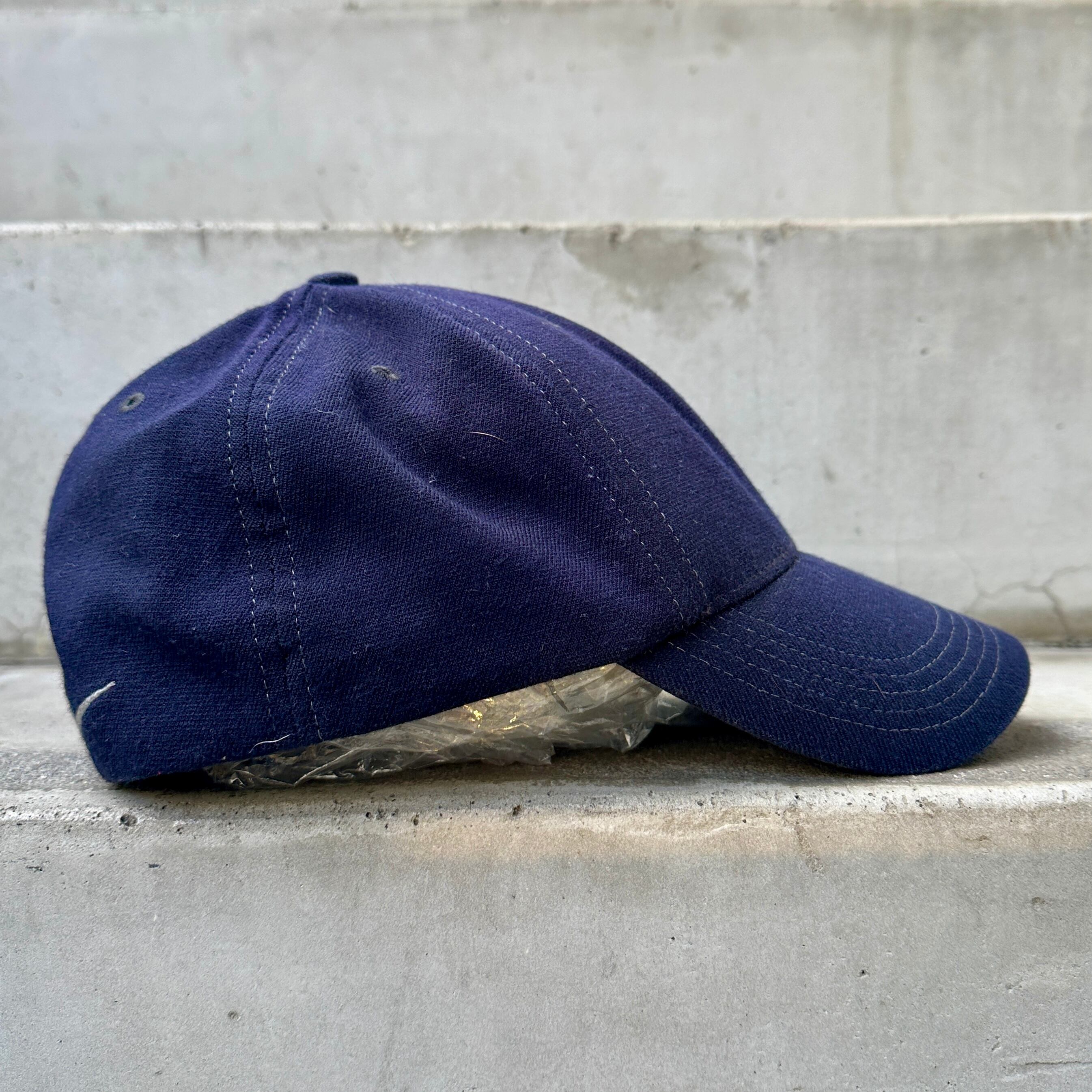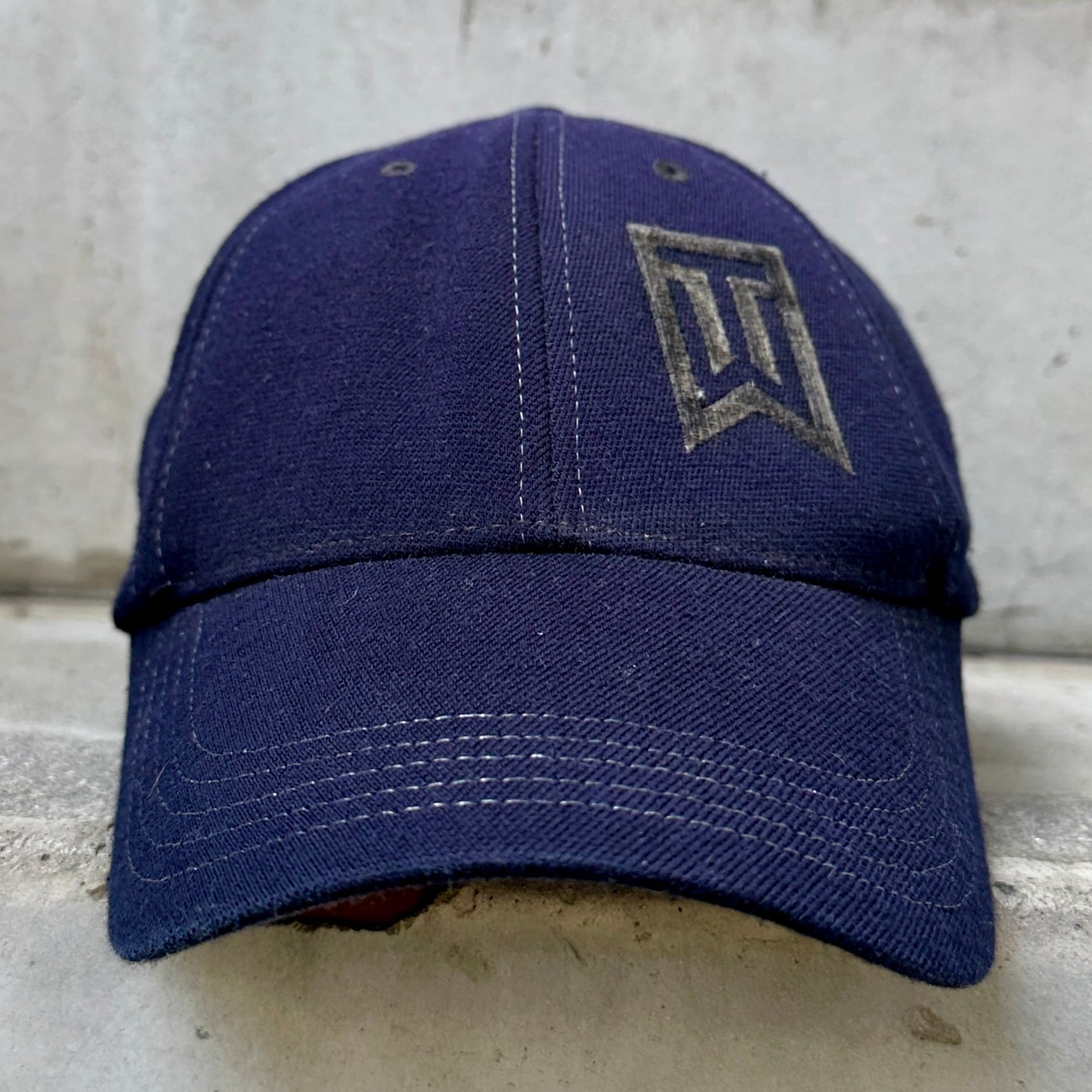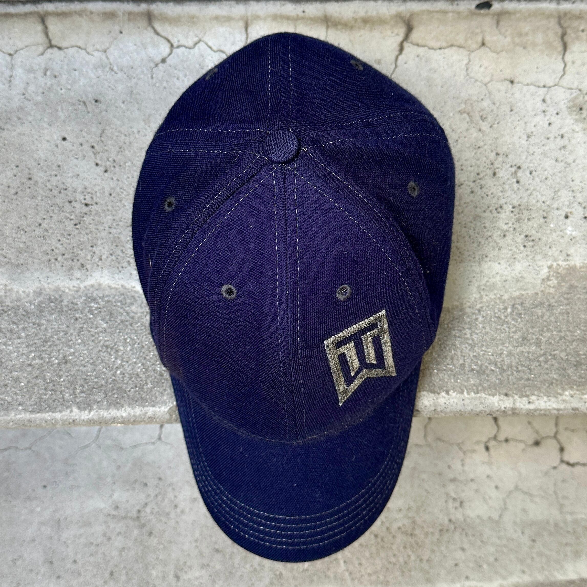 ネイビーのウール混素材、フロント左パネルにTWロゴマーク刺繍、バック右パネルにスウォッシュ刺繍、ストレッチの効いたアジャスターナシのデザインです。
