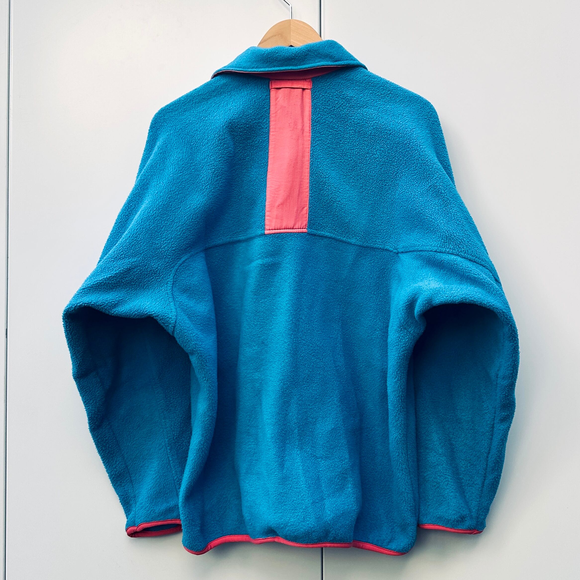 ターコイズブルーxピンク、左胸にロゴマーク刺繍、右袖にNIKEロゴ刺繍、ジッパー付きハンドウォームポケットの付いたシンプルデザインです。