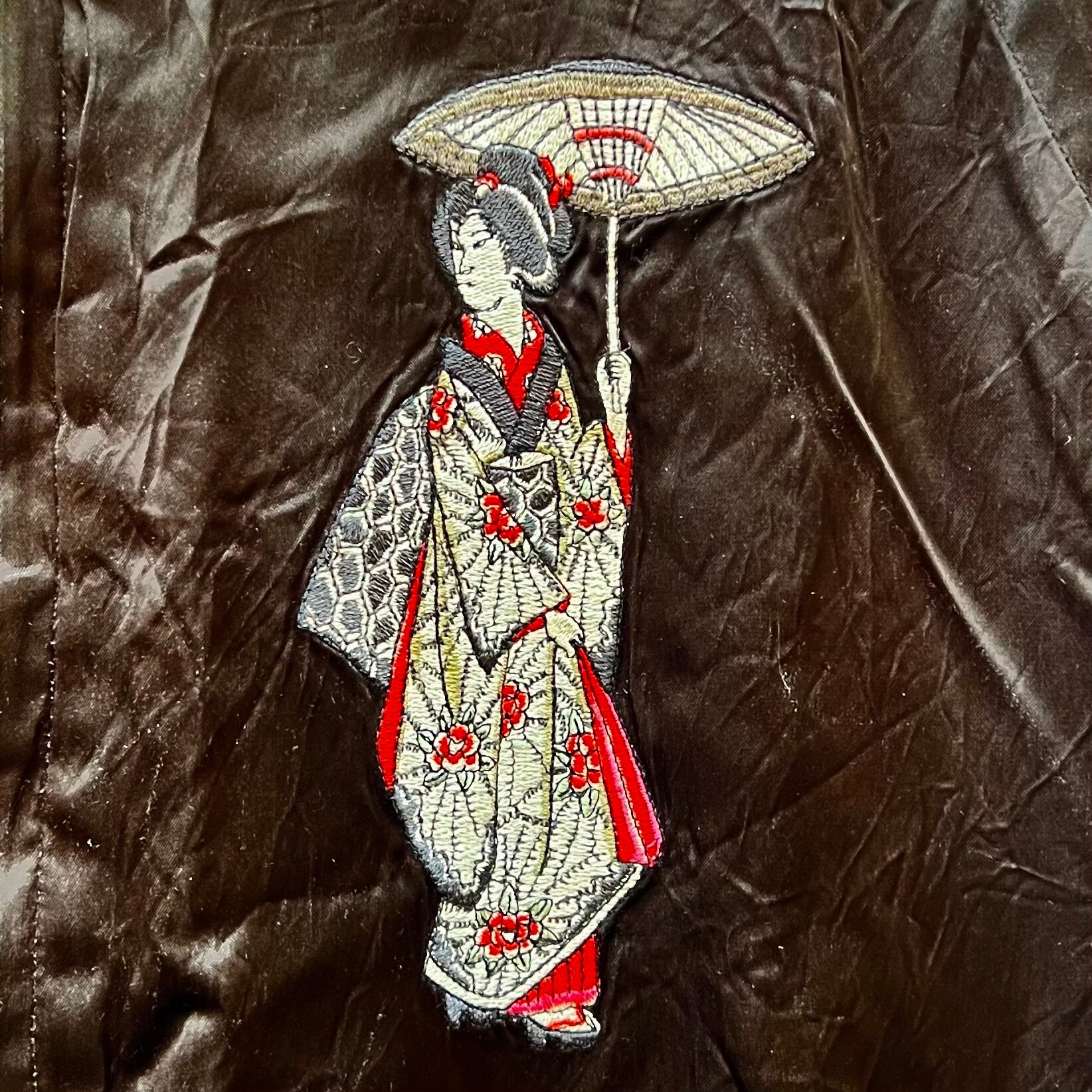 ・ブラック/オフホワイト面、左胸に龍、右胸に芸者とJAPAN、バックに鷹刺繍