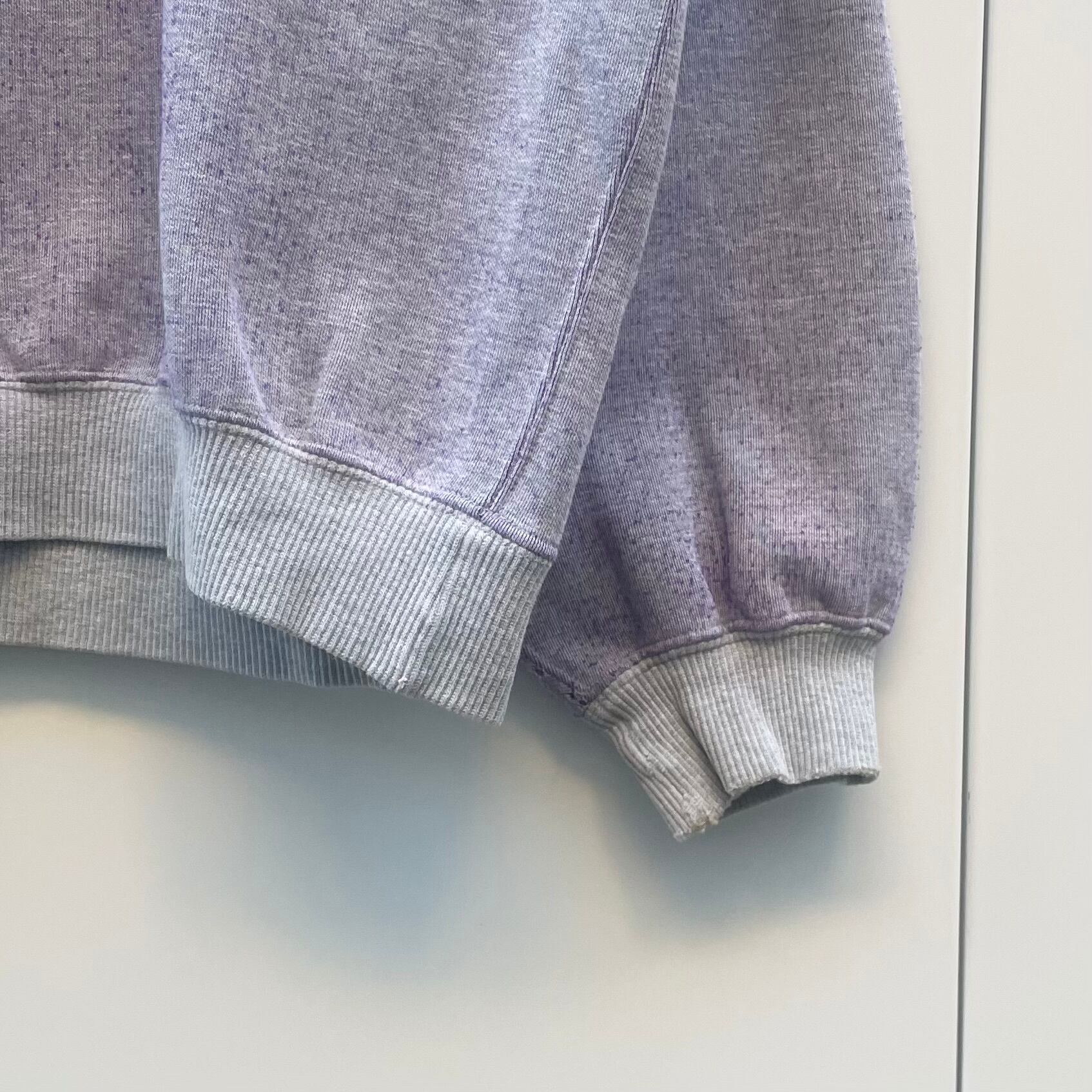 裏地のパープルが表の毛玉がで見られます。その他、着用感が見られますが、目立ったヨゴレやダメージは見られません。