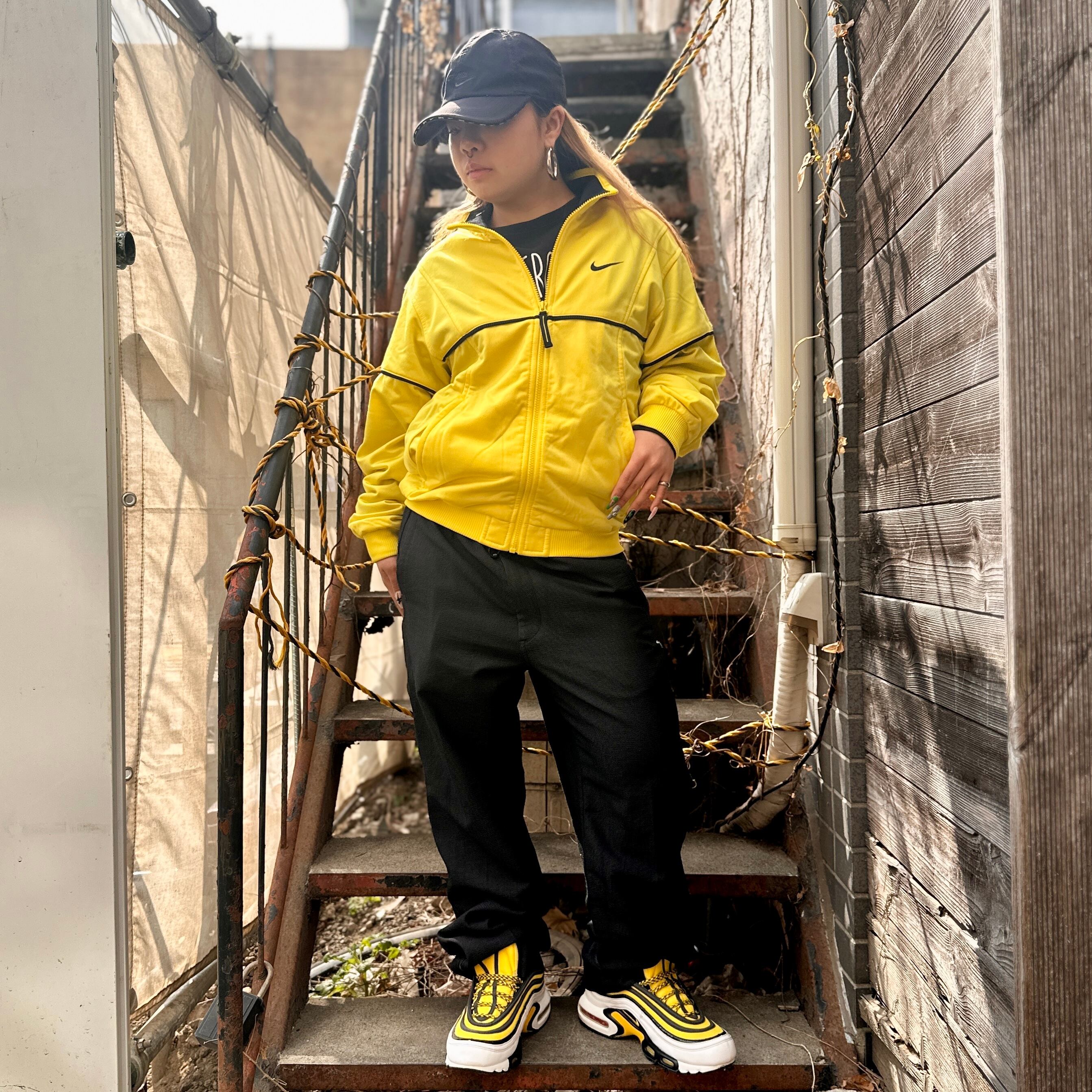 イエローxブラックライン、左胸にスウォッシュ刺繍、バックにNIKE刺繍が入るシンプルデザインです。