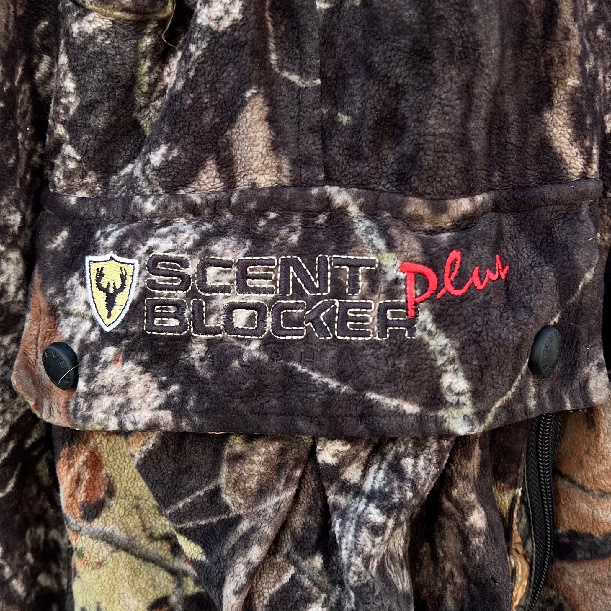リアルツリーカモの総柄プリントのフリース素材、右サイドのカーゴポケットにSCENT BLOCKER plus刺繍、ウエストの両サイドにアジャスターの付いたカーゴ型デザインです。