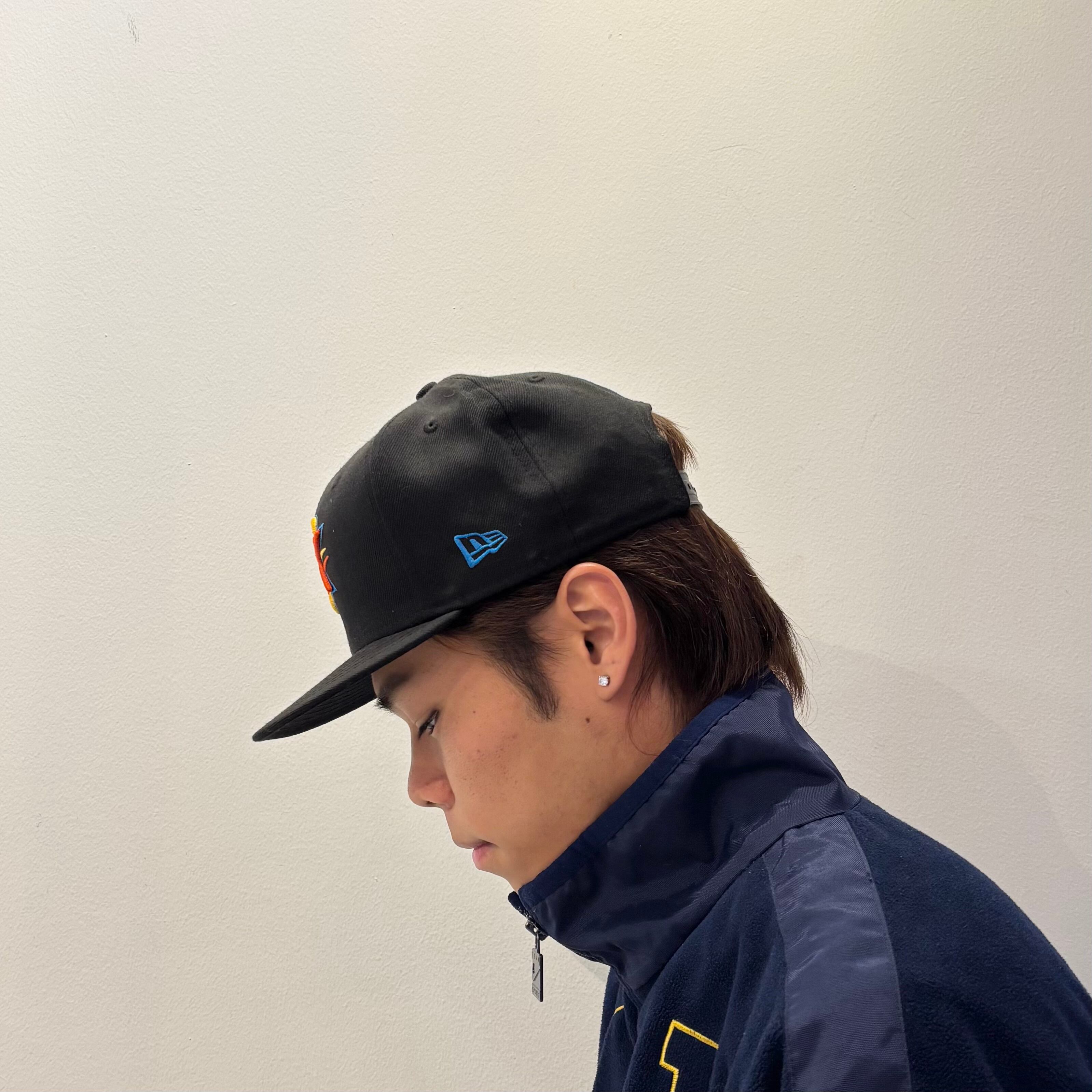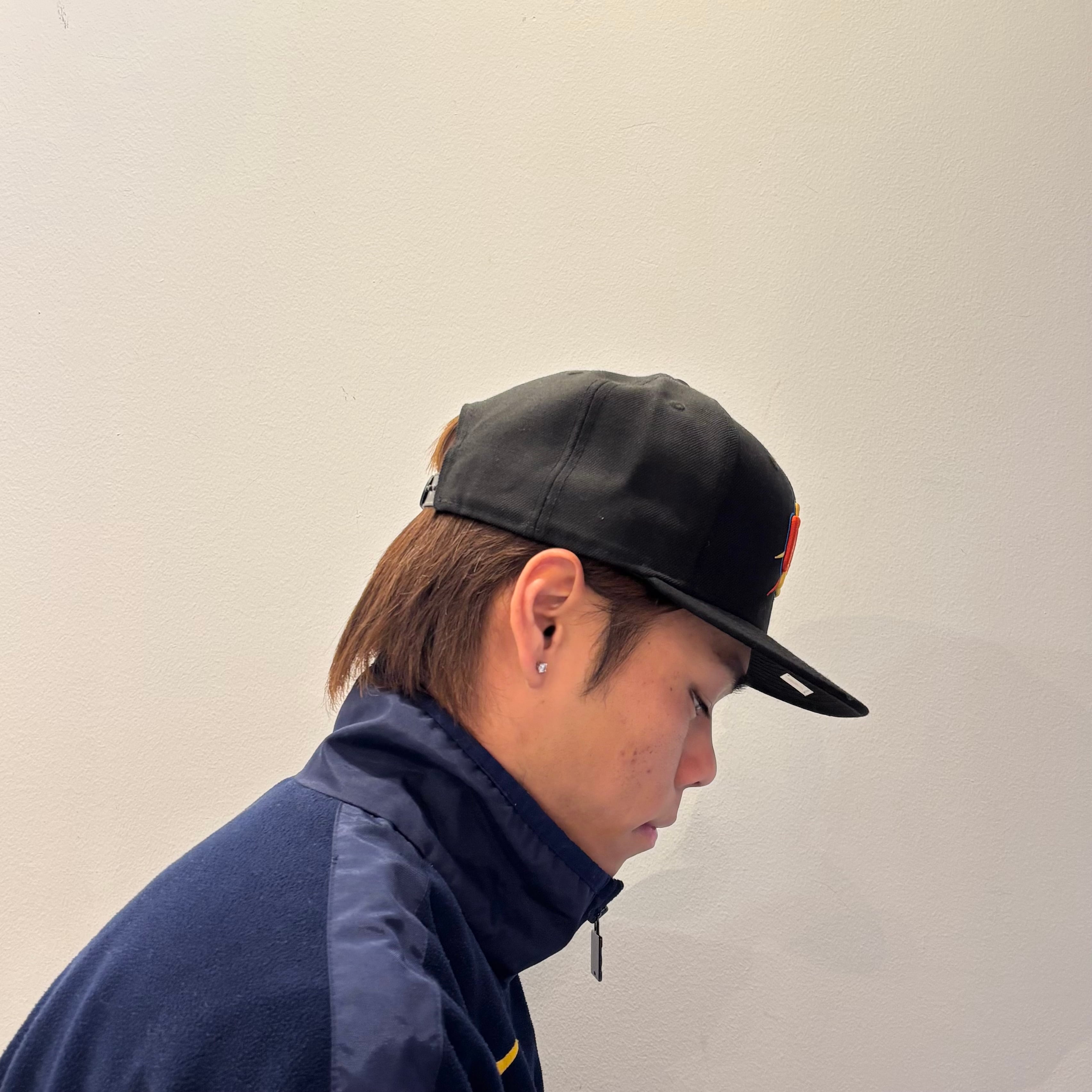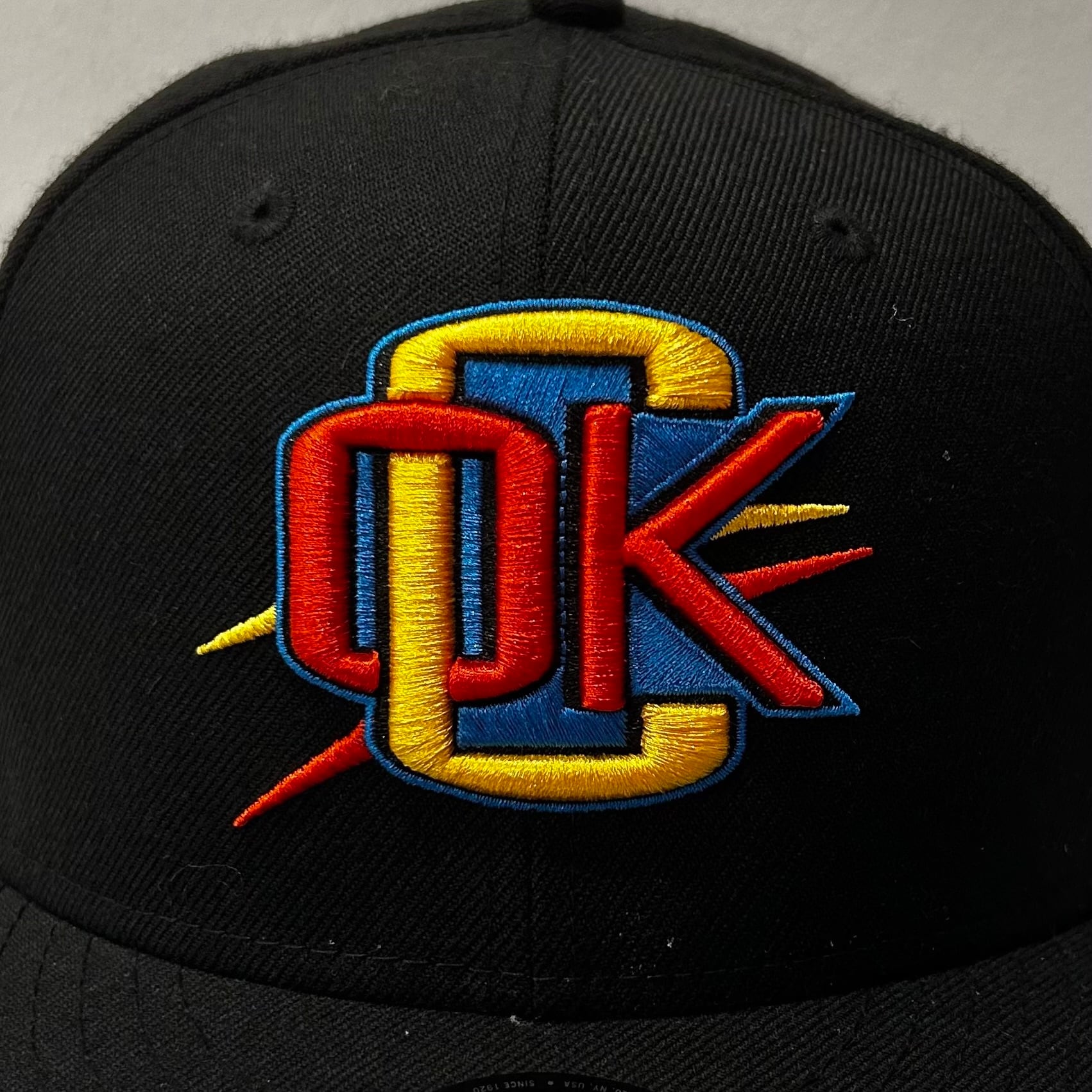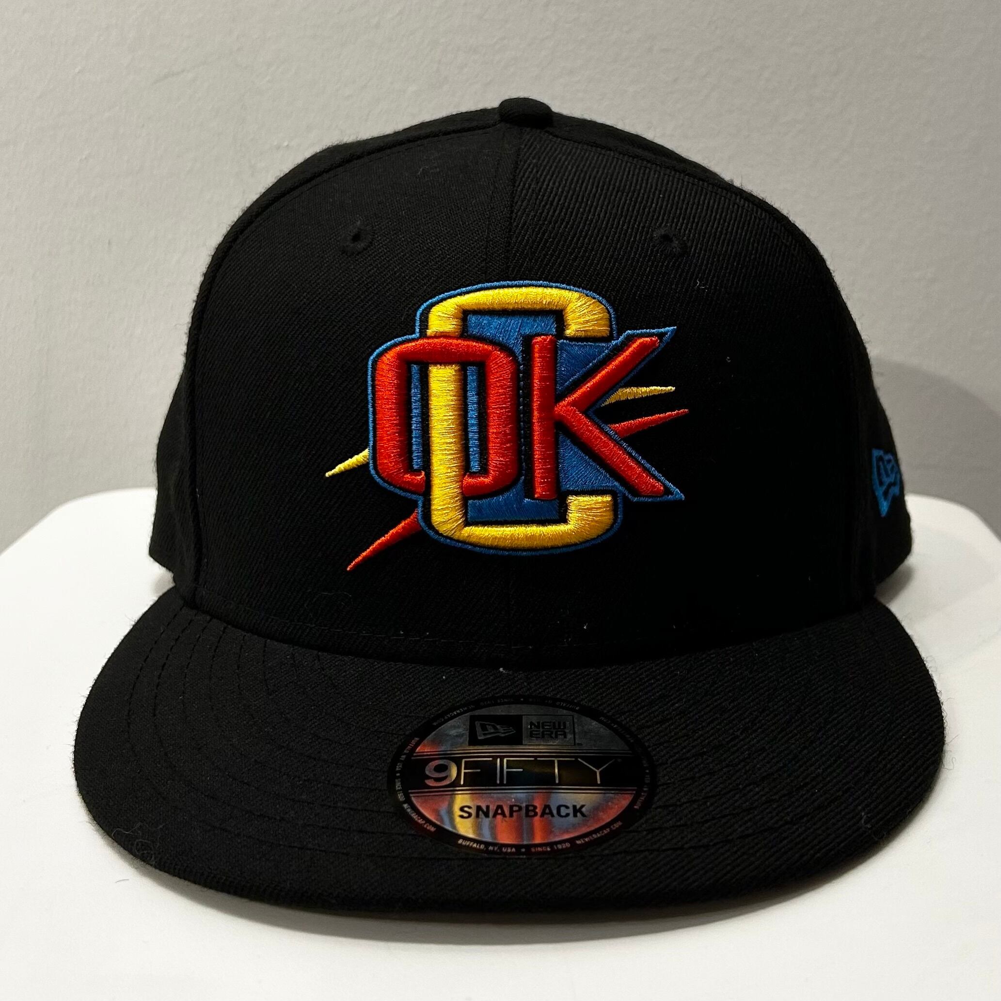 ブラックのウール素材、フロントにOKCロゴ刺繍、左サイドにNEWERAロゴマーク刺繍、バックにNBAロゴマーク刺繍、スナップバックアジャスターを使用したデザインです。
