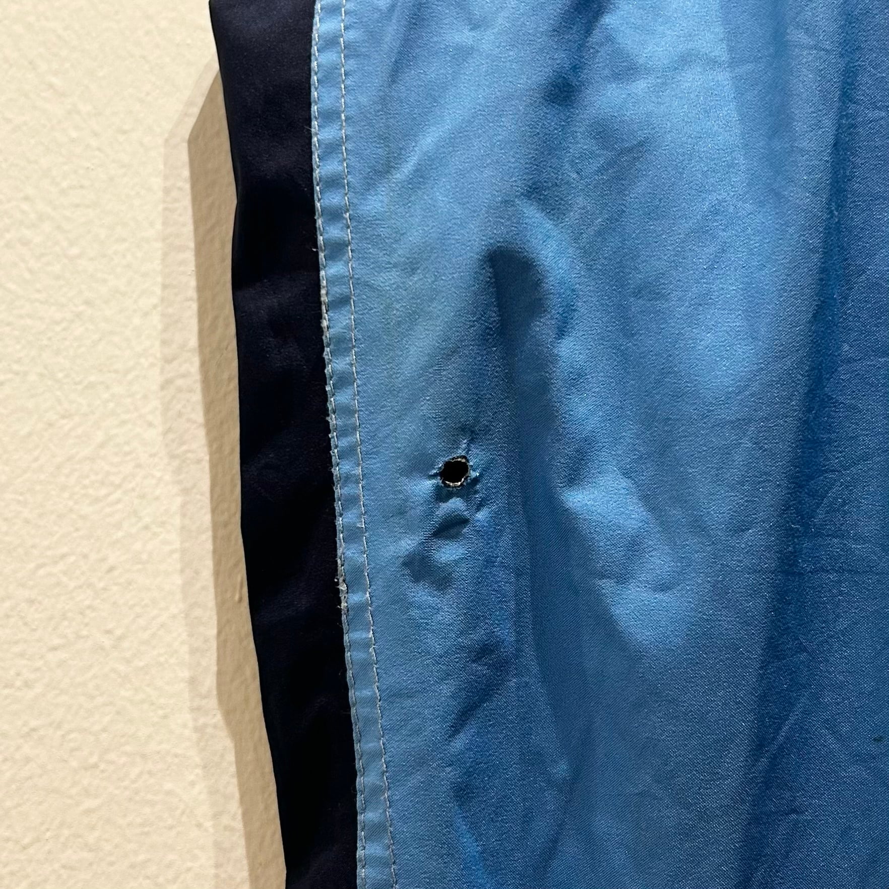 右ひじ付近に穴が見られます。その他、着用感及び薄汚れが見られる箇所がありますが、目立ったヨゴレやダメージは見られません。